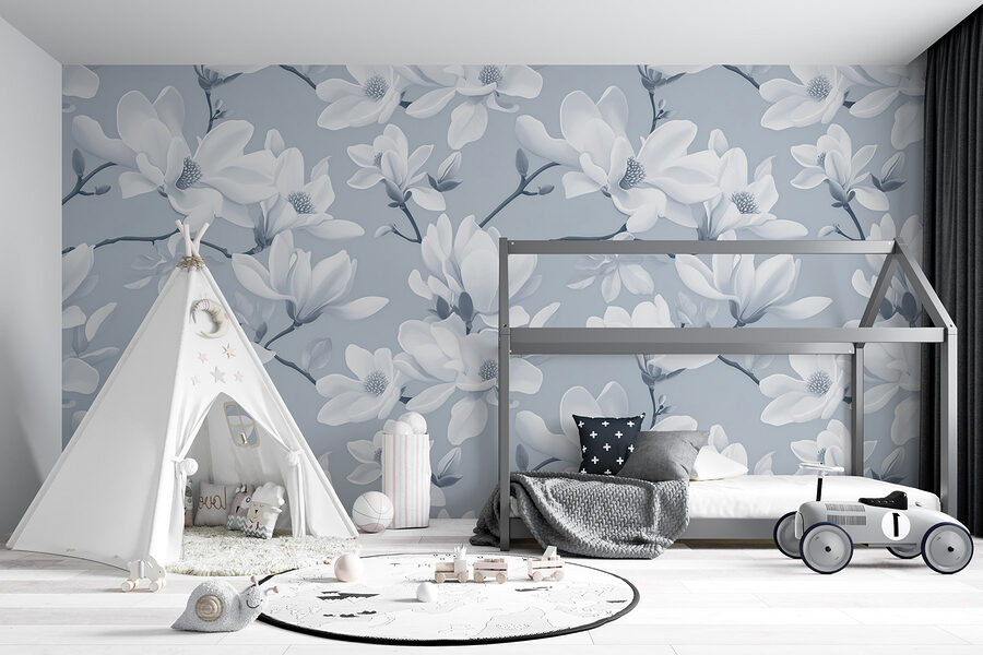 Transformeer uw ruimte met deze dromerige muurschildering met een prachtig patroon van witte bloemen. Het is alsof u een lentetuin in huis haalt – iedereen die de kamer binnenkomt, voelt zich alsof hij of zij een serene oase is binnengestapt. De zachte aquarelstijl voegt een vleugje eigenzinnigheid toe, waardoor het perfect is voor gezellige hoekjes of chique woonruimtes. Stel je voor dat je ‘s ochtends van je koffie nipt, omringd door deze bloemen – dat is zeker beter dan naar saaie muren staren! Bovendien zorgt het zachte kleurenpalet voor een rustgevende sfeer, waardoor elke dag een beetje specialer aanvoelt. Laat je huis tot leven komen met de natuur – je hoeft geen groene vingers te hebben!
