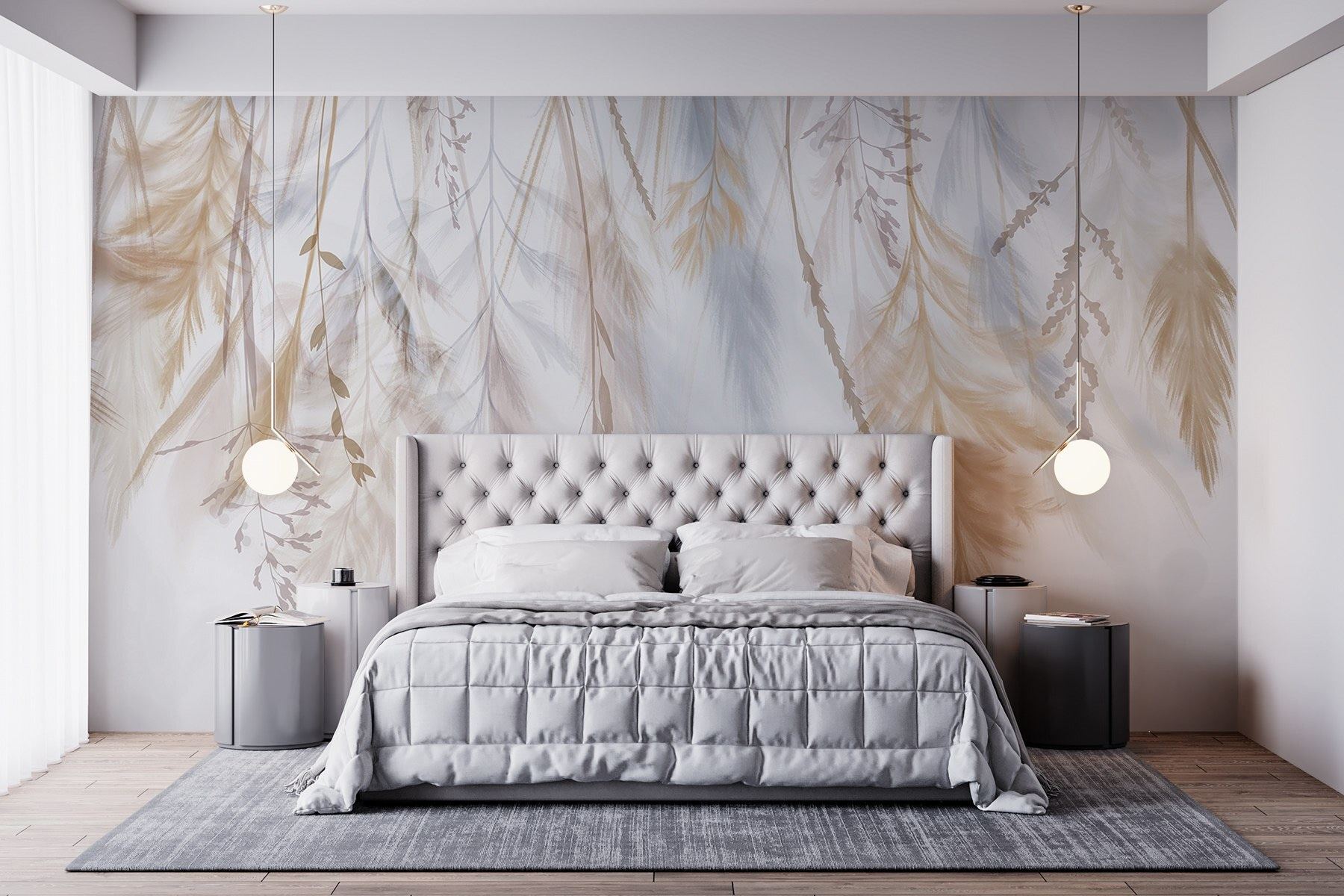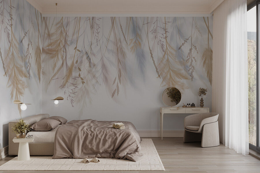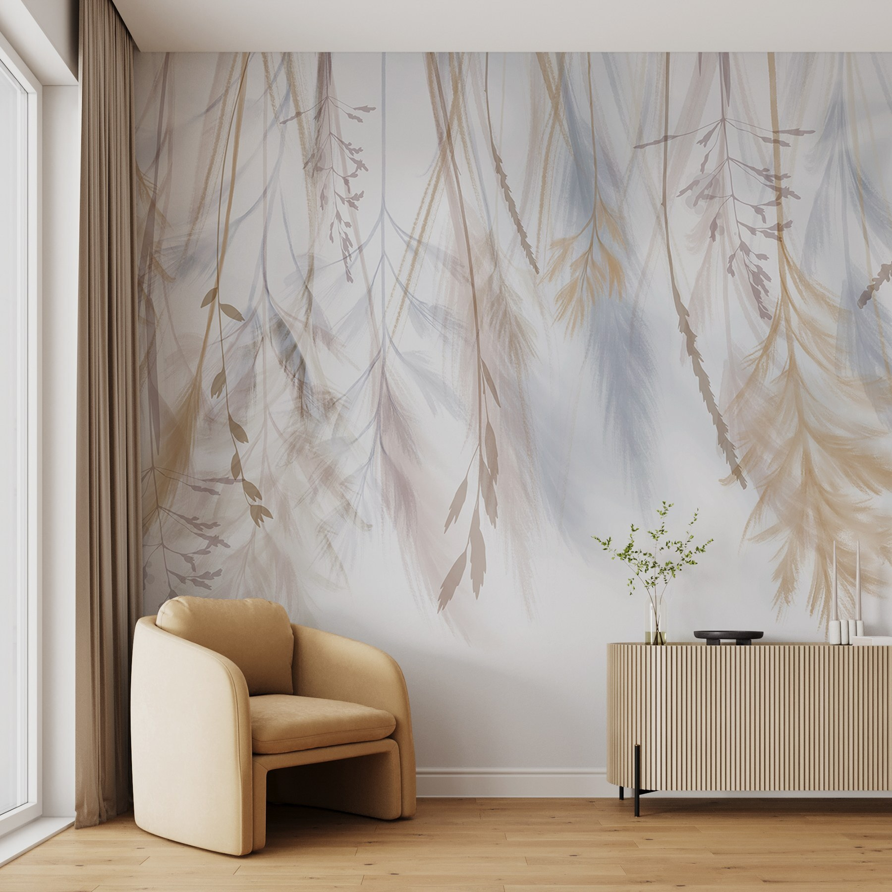 Haal de zachte charme van de natuur naar binnen met ‘Delicate Botanicals in Soft Hues’. Deze muurschildering voelt als een fluistering van een tuin, die net buiten bereik heen en weer zwaait. Stel je voor dat je elke keer dat je je ruimte binnenkomt, een vredig toevluchtsoord binnenstapt. Die zachte, aquarelachtige planten zweven rond en verwarmen je muren zonder al te veel aandacht te vragen. Perfect voor het creëren van een gezellig leeshoekje of een serene slaapkamer, het voegt een vleugje rust toe. Het is als een vriend die je stilletjes aanmoedigt om diep adem te halen en gewoon te zijn. Iedereen die het ziet, wil misschien wel lekker onderuit zakken met een kopje thee en een goed boek – zalig!