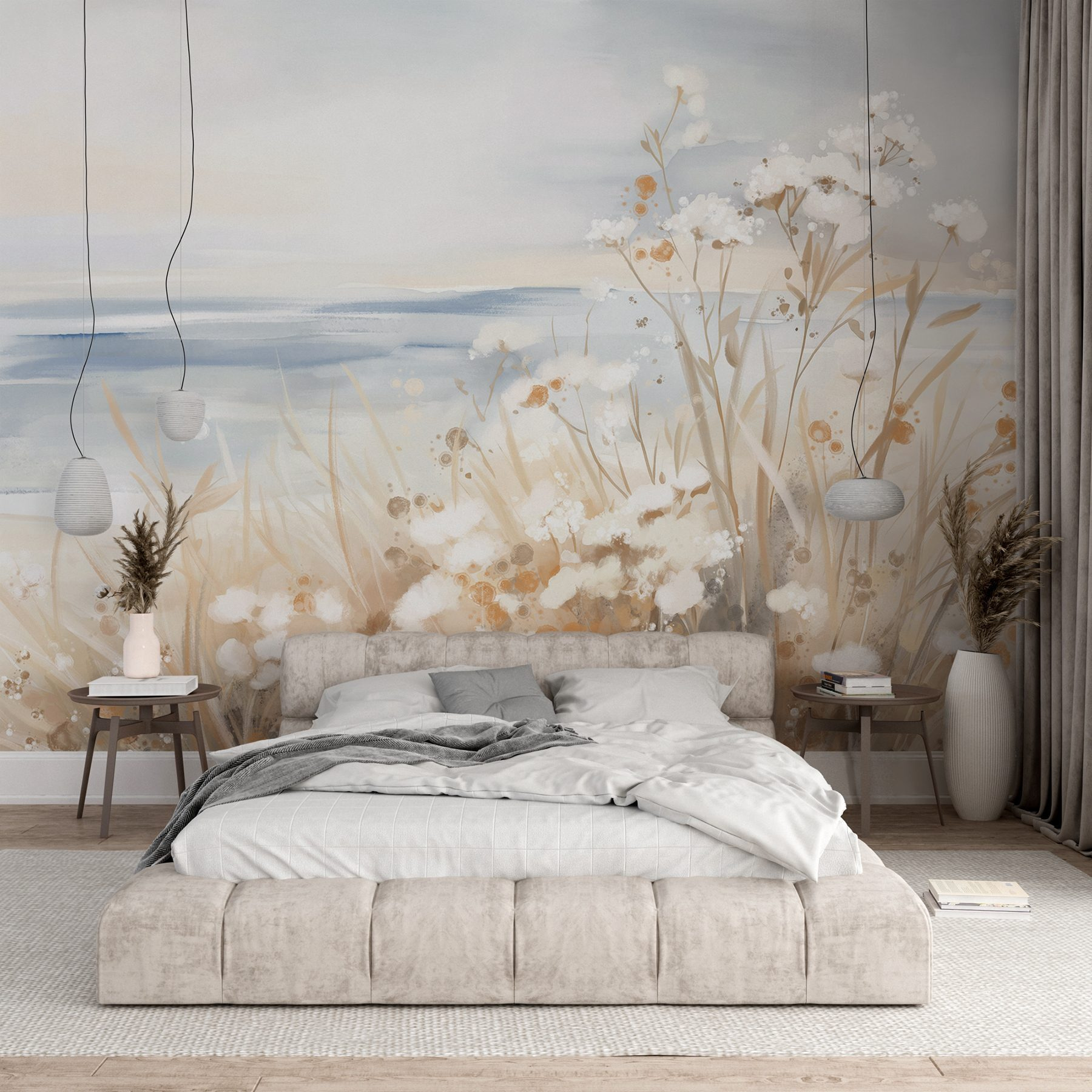 Transformeer je ruimte met deze prachtige muurschildering met delicate bloemen en zachte grassen. Stel je voor dat je een kamer binnenloopt die aanvoelt als een zacht briesje op een warme lentedag. De aardetinten en aquarel vibe creëren een rustgevende sfeer die elke hoek van het huis kan opvrolijken. Of het nu in een gezellig leeshoekje is of in een levendige woonkamer, deze muurschildering nodigt uit tot een vleugje natuur binnenshuis. Vrienden zouden kunnen zeggen dat het voelt als een kleine ontsnapping naar een serene tuin. Dus ga je gang, omarm die bloemencharme en laat die bloemen je ruimte leven inblazen!