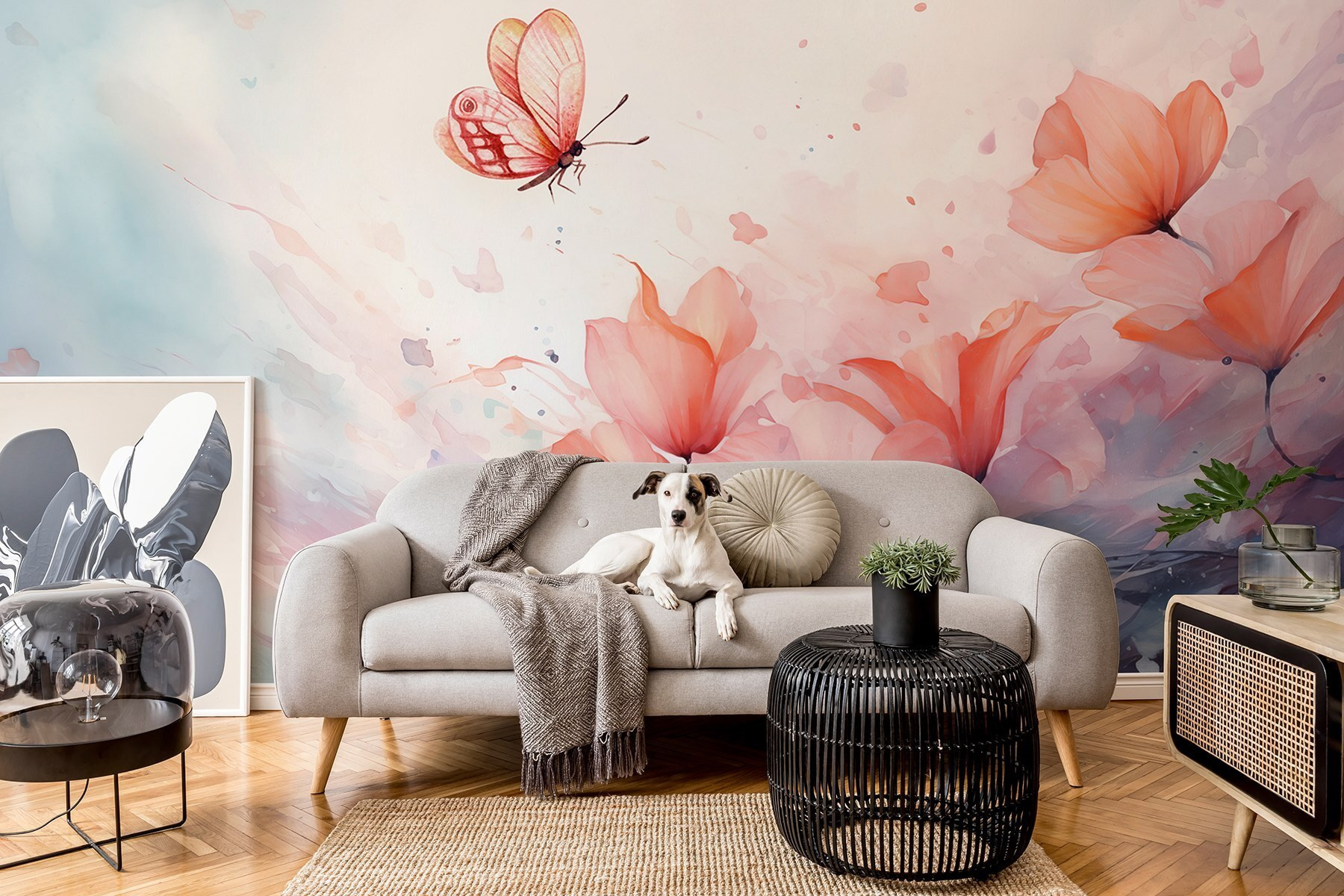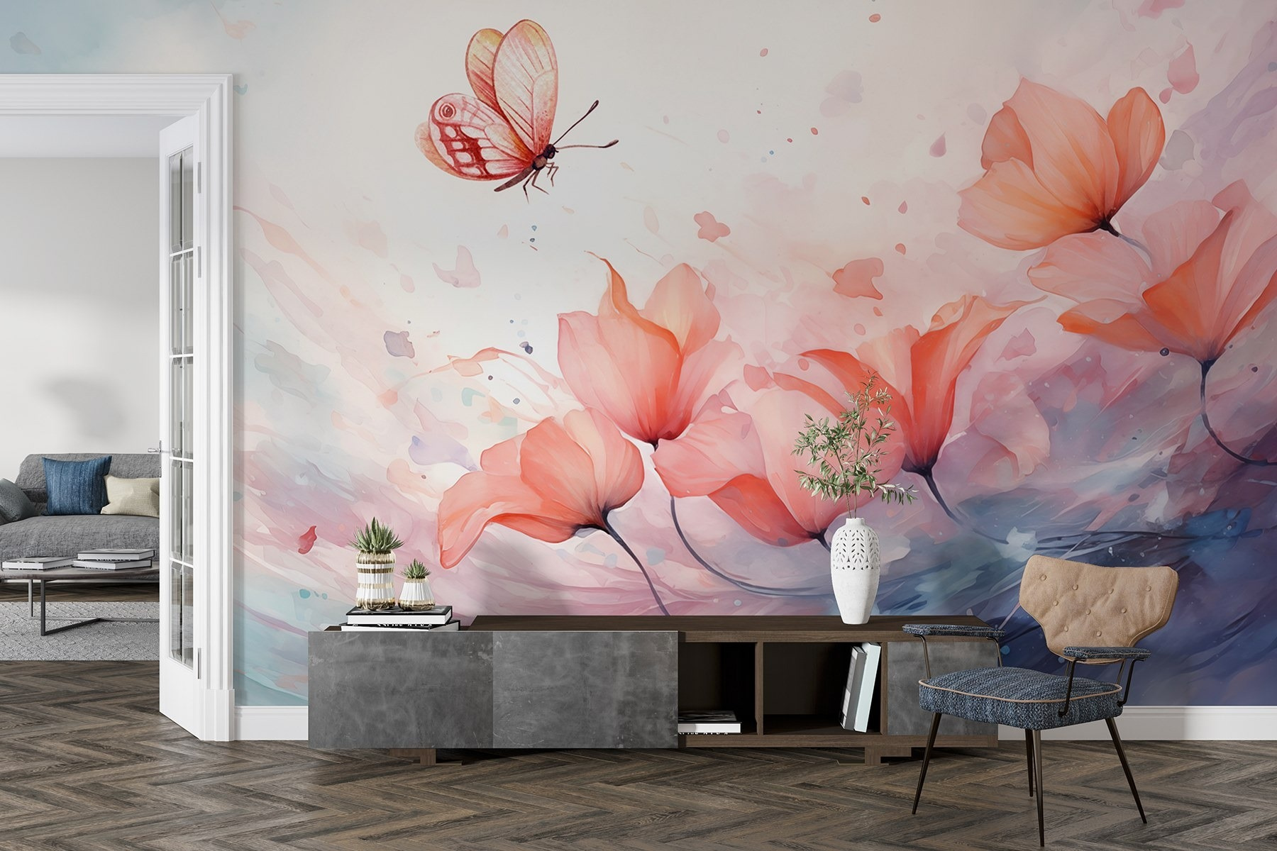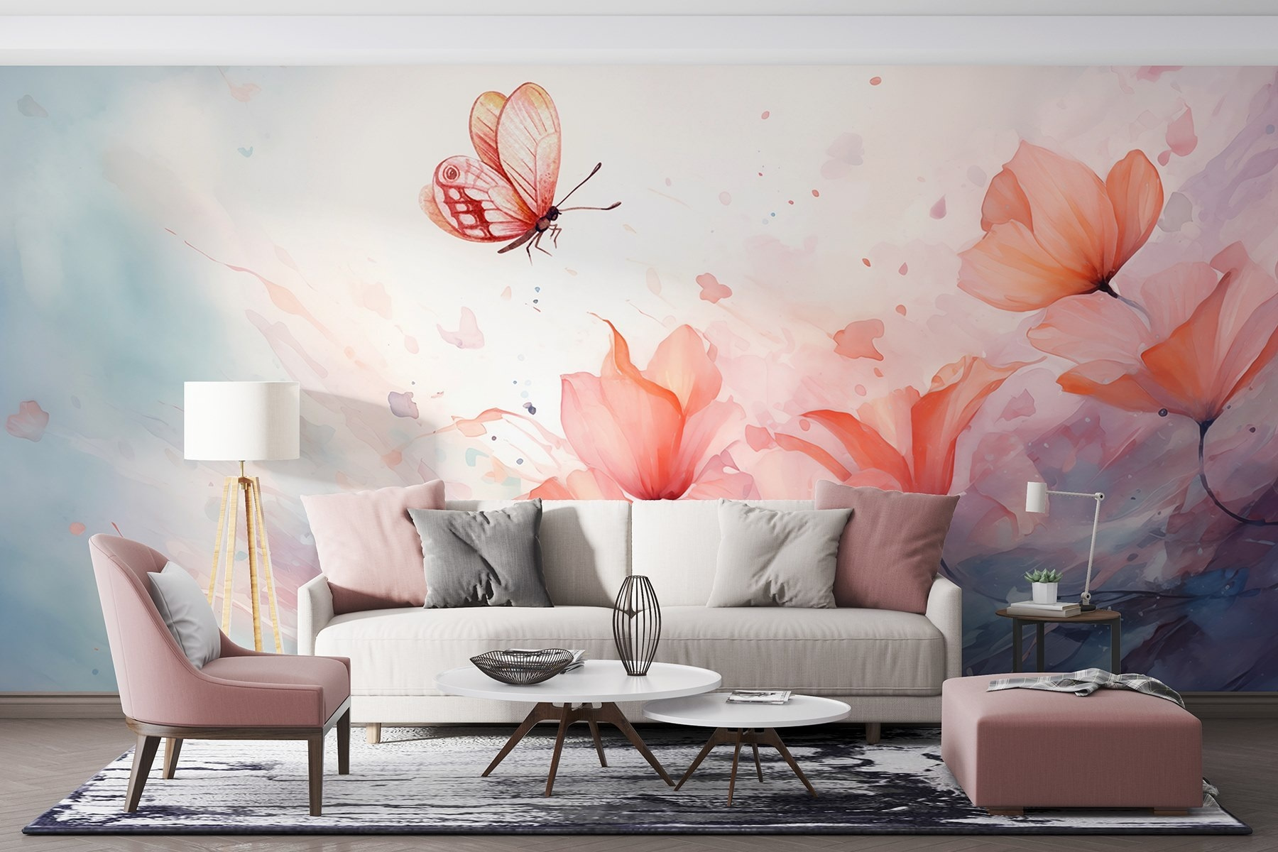 Transformeer je ruimte met deze betoverende muurschildering, waar een delicate vlinder boven een serene bloemenzee fladdert. Het is alsof je een stukje magie van de natuur in huis haalt! Stel je voor dat je elke dag wakker wordt met deze zachte aquareldroom. De zachte tinten roepen een vredige sfeer op, waardoor elke kamer gezelliger aanvoelt. Perfect voor een zonovergoten hoekje of een gezellig leeshoekje, het nodigt uit tot dagdromen en een glimlach. Misschien roept het herinneringen op aan een grillige tuinwandeling of inspireert het tot een gezellig praatje bij de koffie over de schoonheid van eenvoudige dingen. Het is decor dat een mooi verhaal vertelt.