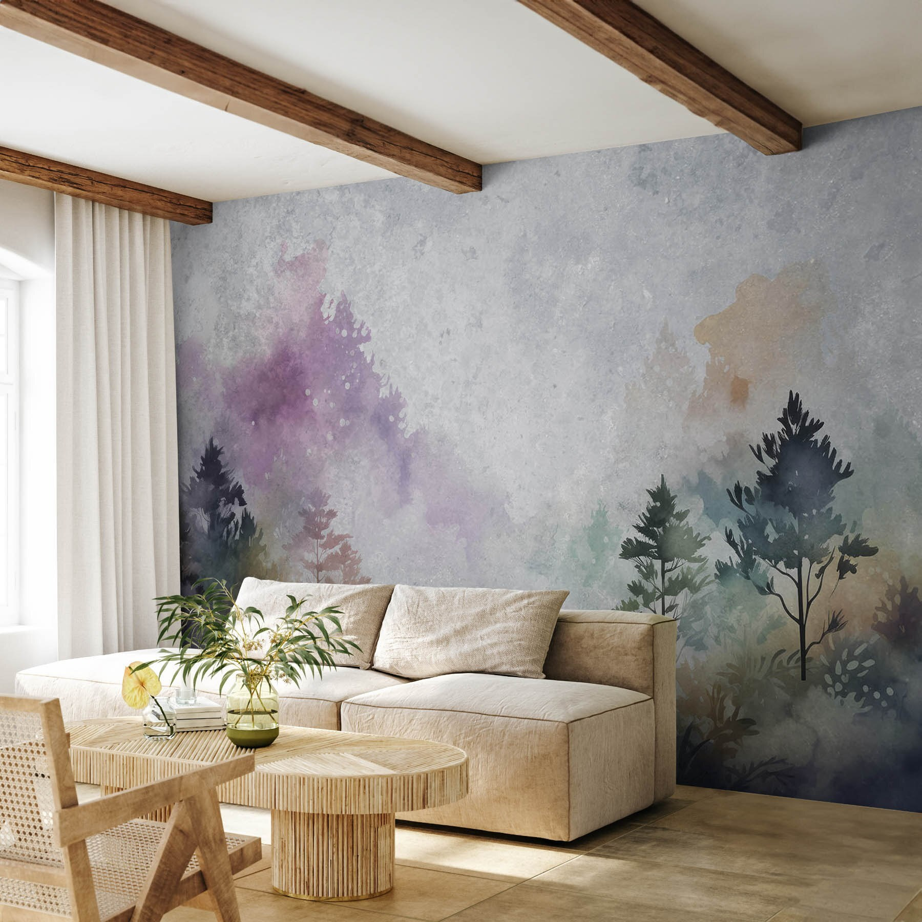 Verander je ruimte in een serene ontsnapping met deze betoverende muurschildering met grillige bomen en zacht struikgewas. Stel je voor dat je ‘s ochtends aan je koffie nipt terwijl je je genesteld voelt in een vredig bos, allemaal vanuit het comfort van thuis. De zachte aquareltinten zorgen voor een rustgevende sfeer, perfect voor elke kamer die een vleugje magie van de natuur nodig heeft. Vrienden zullen zich afvragen hoe je ruimte zo uitnodigend aanvoelt; het is alsof elke blik op de muur een mini-uitstapje is. Of het nu voor een gezellig leeshoekje is of een levendige woonkamer, deze muurschildering voegt een vleugje rust toe dat gewoon te mooi is om te laten liggen.