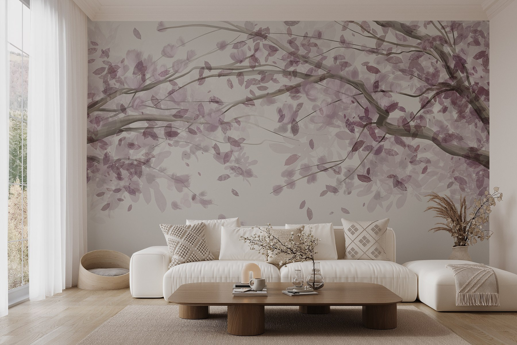 Verander elke kamer in een serene ontsnapping met deze betoverende muurschildering met een boom versierd met elegante paarse bladeren. Het is alsof je een stukje van een rustgevende Japanse tuin in huis haalt. Stel je voor dat je thee drinkt terwijl je naar deze zachte waterverf takken staart – zo’n oppepper! Deze muurschildering straalt rust uit en is daarom perfect voor een gezellige leeshoek of een speelse kinderkamer. En die paarse tinten? Ze voegen een vleugje charme toe zonder de zintuigen te overweldigen. Wie zou er niet een beetje vreugde voelen elke keer als hij langsloopt? Perfect voor iedereen die de gratie van de natuur in huis wil halen. Omarm de schoonheid!
