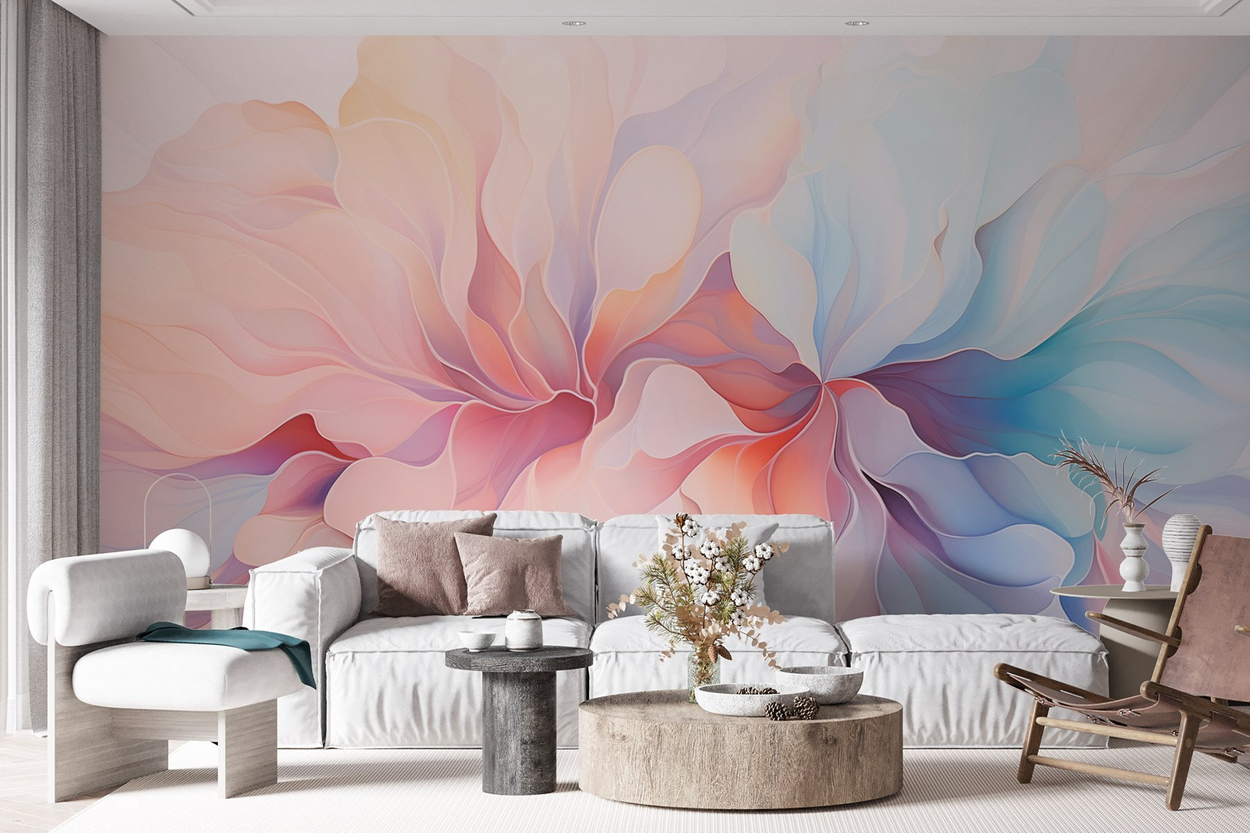 Transformeer je ruimte met de muurschildering “Soft Hues in Delicate Harmony”, waar kleuren dansen als een zacht briesje op een lentemorgen. Stel je voor dat je een kamer binnenstapt die aanvoelt als een zachte omhelzing, met die gedempte pastelbloemen die je omhullen met rust. Deze muurschildering is perfect voor een gezellige leeshoek of een serene kantoorhoek en voegt precies het juiste vleugje eigenzinnigheid toe zonder te overdrijven. Vrienden kunnen naar binnen leunen en bewonderen hoe het licht door de lagen speelt, waardoor gesprekken ontstaan die net zo licht aanvoelen als de muurschildering zelf. Wie wist dat decoreren zo rustgevend kon zijn? Het is alsof je een stukje natuur in huis haalt, zonder de pollen!