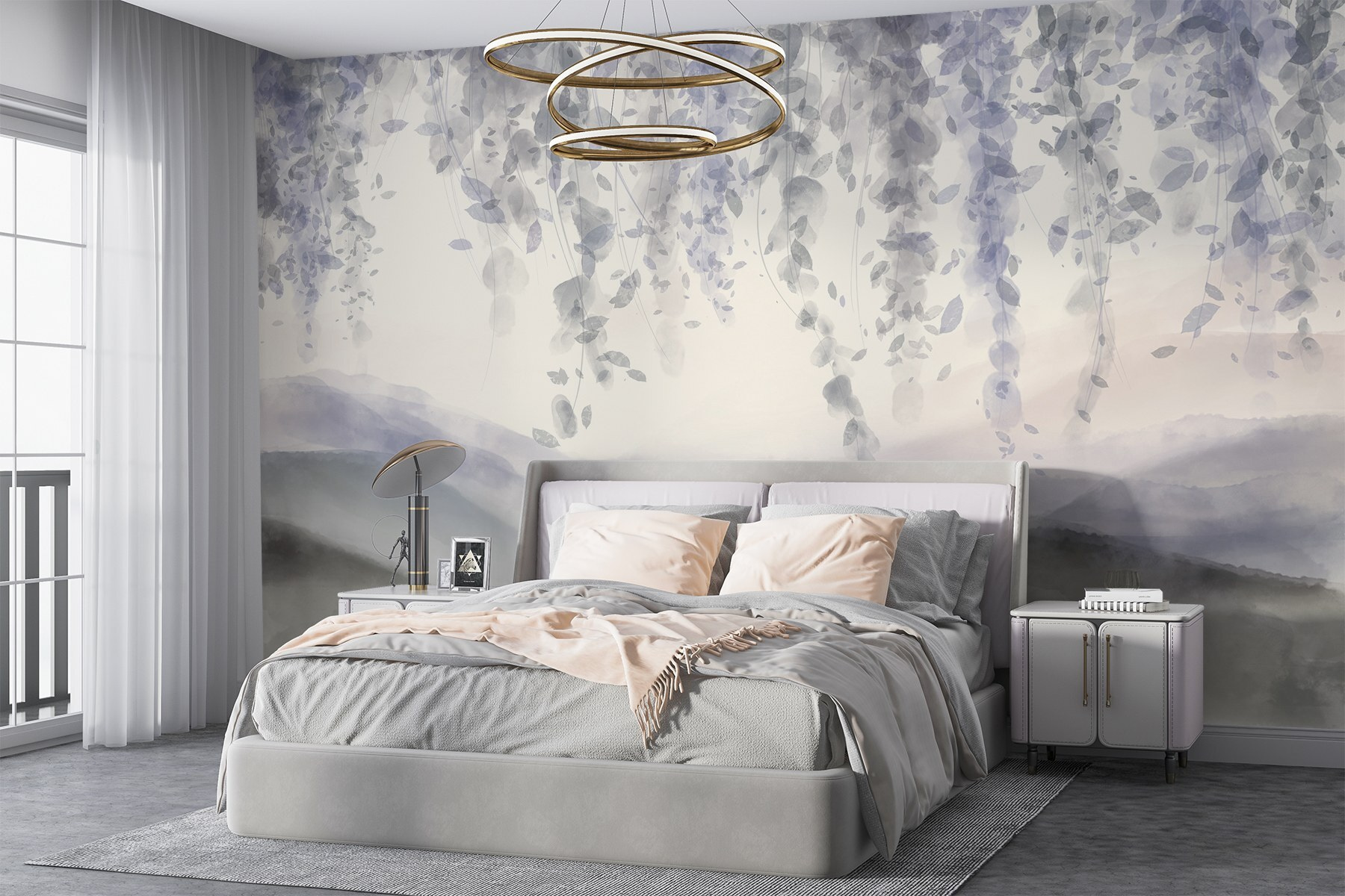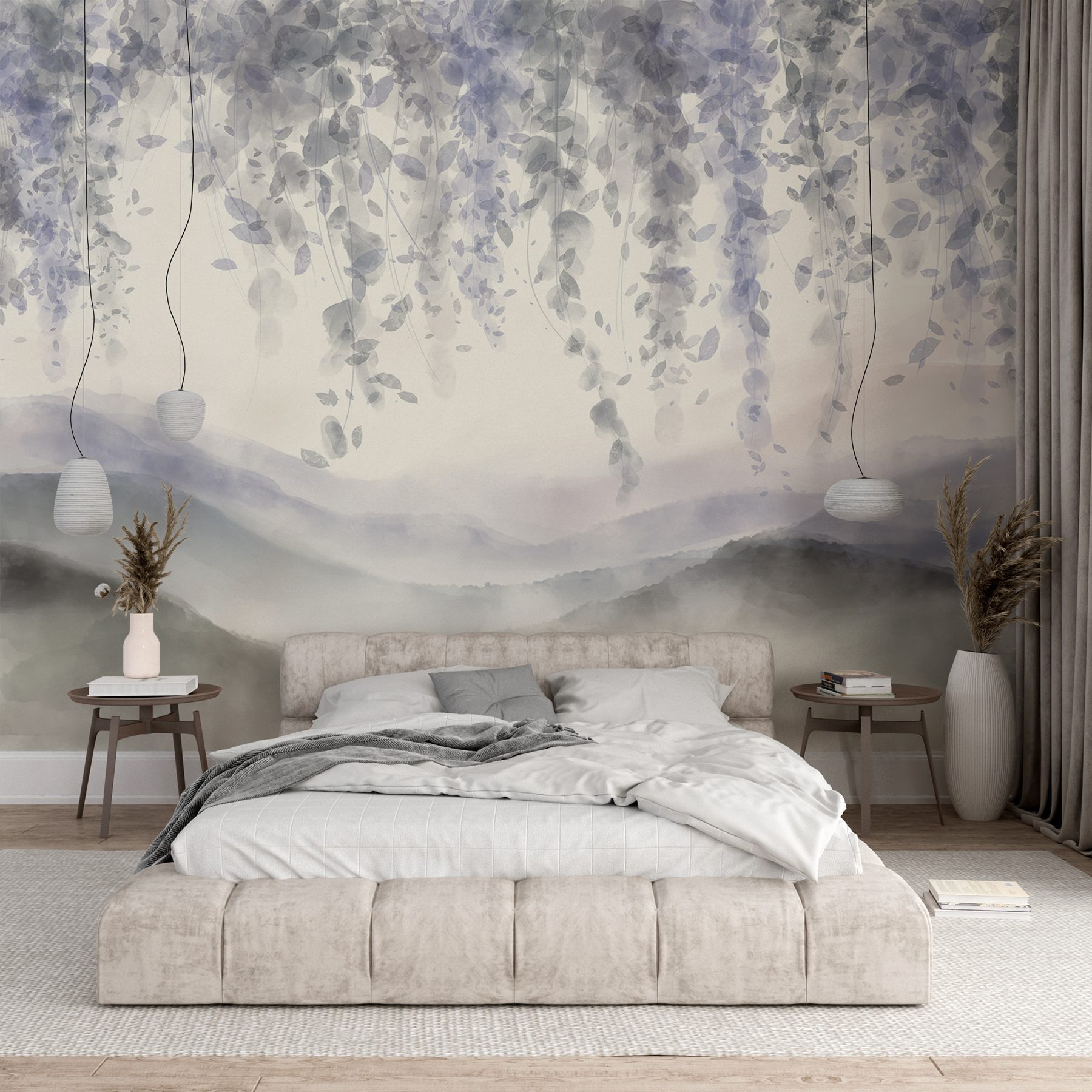 Transformeer elke ruimte met deze dromerige muurschildering, waar wazige bergen zwevende bladeren ontmoeten. Stel je voor dat je wakker wordt in een landschap dat sereniteit uitstraalt. De zachte kleuren mengen moeiteloos, waardoor het perfect is voor een gezellige leeshoek of een rustgevende slaapkamer. Het is alsof je een stukje natuur in huis haalt, zonder de insecten en het vuil. Denk maar aan je ochtendkoffie terwijl je naar dit rustige uitzicht staart. Perfect voor iedereen die even wil ontsnappen aan de drukte, want de ontspanningsvibes van deze muurschildering geven je een goed gevoel. Het is een zachte herinnering om te ademen, te ontspannen en van elk moment te genieten.