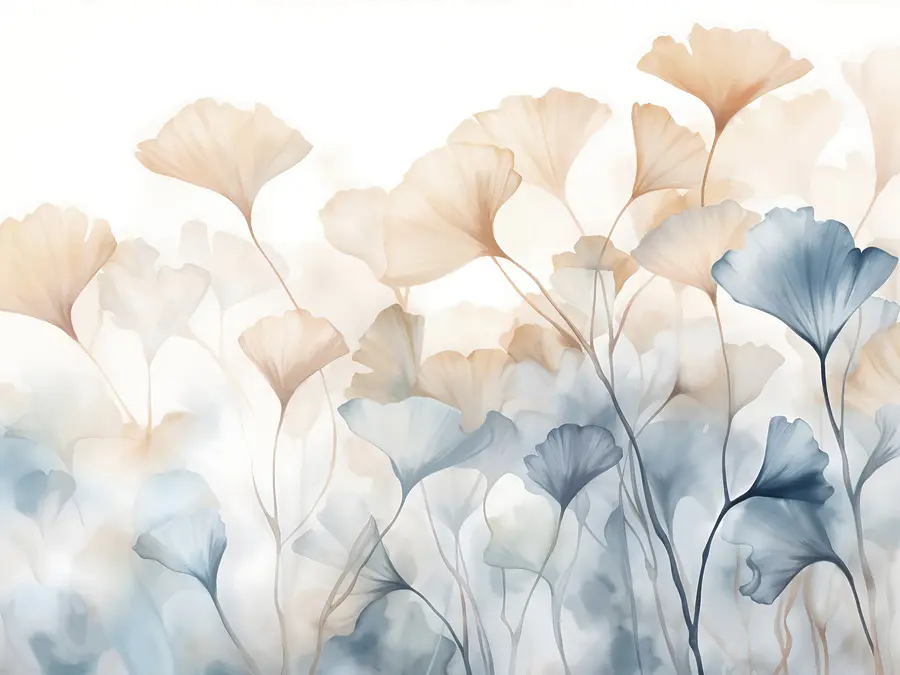Tover je ruimte om in een serene tuin met deze prachtige muurschildering met delicate bloemen en bladeren. Stel je voor dat je in een knusse stoel zit, met een warm kopje thee in de hand, terwijl zachte tinten van perzik en blauw op de muur dansen en rust uitnodigen in je huis. Het is alsof je de schoonheid van de natuur in huis haalt zonder dat je een gieter nodig hebt!