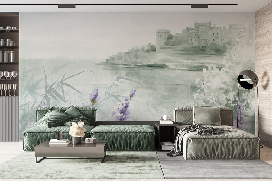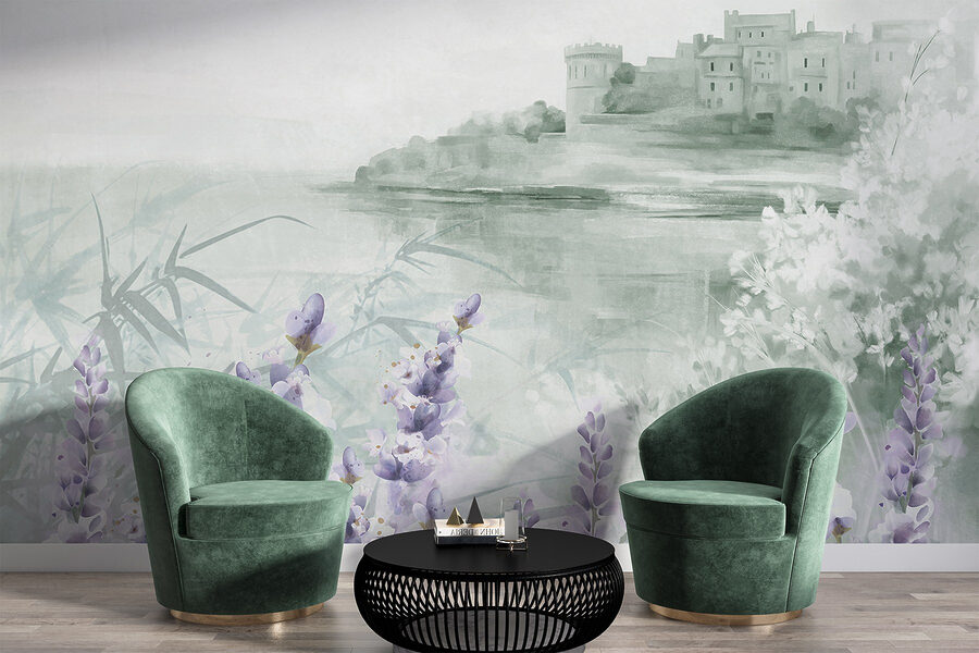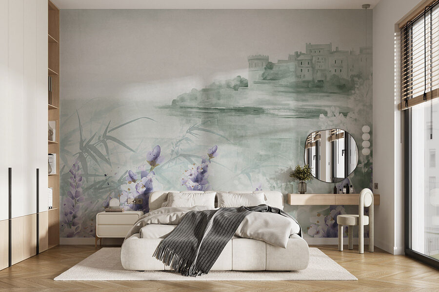Transformeer elke ruimte met deze dromerige aquarelmuurschildering met een charmant kasteel en delicate bloemen. Stel je voor dat je een kamer binnenloopt die aanvoelt als een serene ontsnapping, waar zachte lavendeltinten en zachte groentinten samenkomen om een kalme sfeer te creëren. Het is alsof de muren poëzie fluisteren en uitnodigen tot dagdromen over avonturen in een betoverende tuin. Of het nu gaat om het opfleuren van een gezellige leeshoek of het toevoegen van een vleugje eigenzinnigheid aan een familiekamer, deze muurschildering brengt een vleugje natuurlijke schoonheid binnenshuis. Het is kunst die levendig aanvoelt, vreugde en creativiteit opwekt en je doet glimlachen telkens als je er langs loopt. Wie wist dat decoratie kon aanvoelen als een frisse wind?