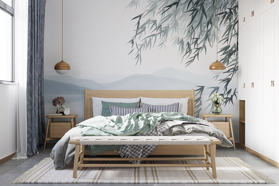 Stap in een serene ontsnapping met deze muurschildering van water, bomen en zachte bergen. Het is alsof je een rustgevend natuurtafereel de woonkamer binnenbrengt, zonder de modder op je schoenen! Stel je voor: iemand die binnenkomt en diep ademhaalt terwijl hij de zachte kleuren en vredige sfeer in zich opneemt. Perfect voor een gezellig leeshoekje of die muur die wel wat extra liefde kan gebruiken. Voeg een knusse stoel toe, misschien een kopje thee, en plotseling ben je verdwaald in een rustig moment. Het draait allemaal om goede gevoelens en een vleugje avontuur, waarbij elke blik op deze muurschildering de drukte doet smelten. Verander je ruimte in een rustig toevluchtsoord met dit dromerige kunstwerk!