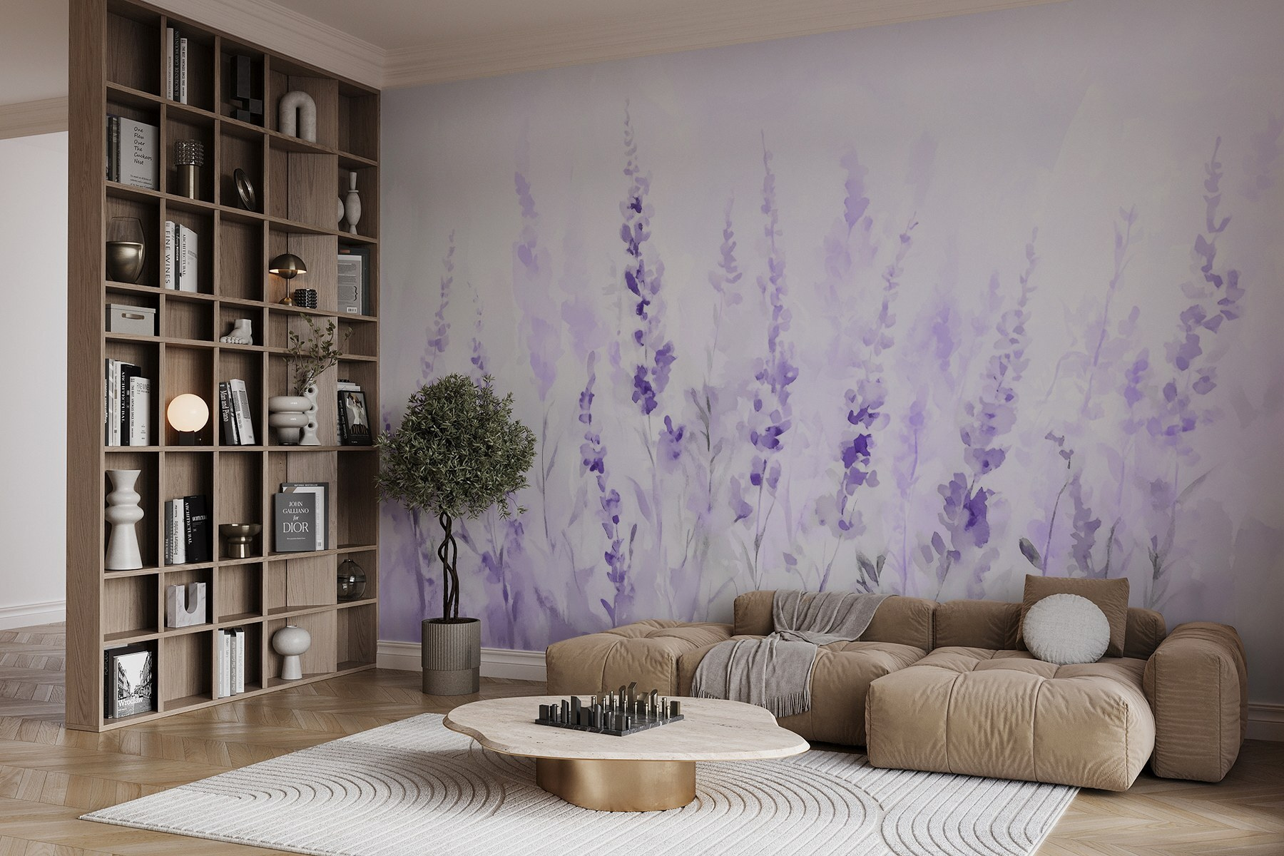 Verander elke ruimte in een serene ontsnapping met deze prachtige muurschildering met zacht paarse bloemen die zachtjes wiegen in de wind. Het is alsof je een tuin binnenshuis haalt zonder het gedoe met niezen of gietertjes. Stel je voor dat je wakker wordt met een uitbarsting van rustgevende lavendeltinten – perfect voor een gezellige slaapkamer of een rustig leeshoekje. De aquarel vibe voegt een dromerig tintje toe, en laten we eerlijk zijn, wie wil niet het gevoel hebben dat hij elke dag door een delicaat bloemenveld wandelt? Ideaal voor wie een beetje natuur binnen wil laten of gewoon om stiekem wat bloemenkracht te hebben zonder dat je je zorgen hoeft te maken over je groene vingers.
