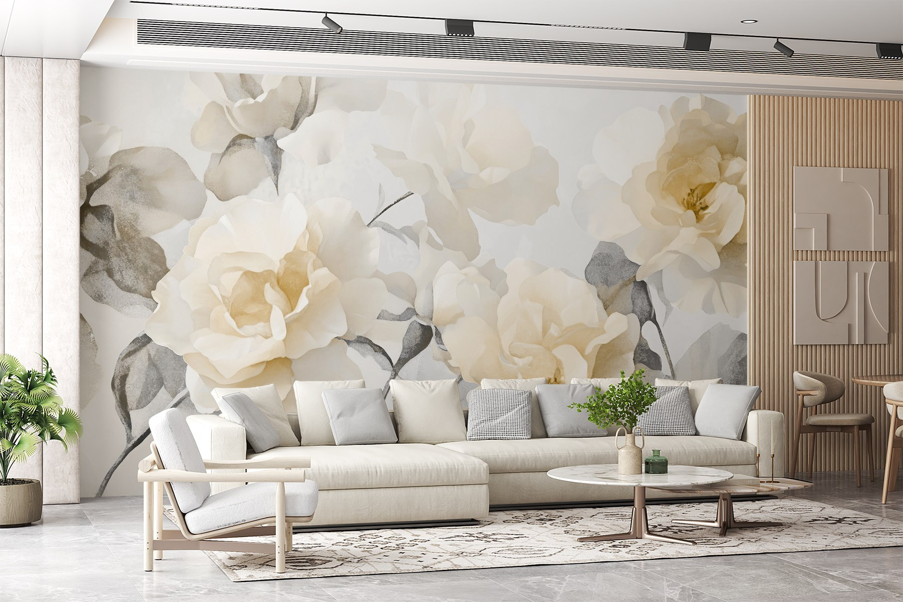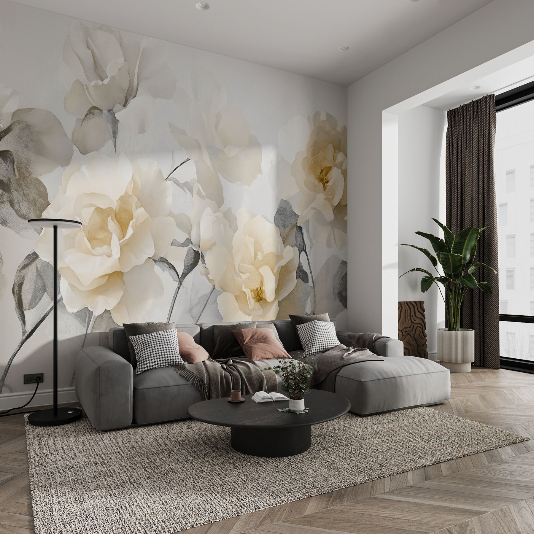Transformeer elke ruimte met deze zachte en prachtige muurschildering met een prachtig boeket witte bloemen. Stel je voor dat je een kamer binnenstapt die aanvoelt als een elegante tuin, rustgevend en fris. De zachte aquarelstijl voegt een vleugje finesse toe terwijl het licht en luchtig blijft. Perfect om een knus hoekje op te fleuren of een statement te maken in een grotere ruimte. Stel je voor dat je thee drinkt, omringd door deze delicate bloemen, bijna alsof ze zoete woordjes fluisteren. Deze muurschildering is niet alleen decor; het is een stukje rust voor elk huis.