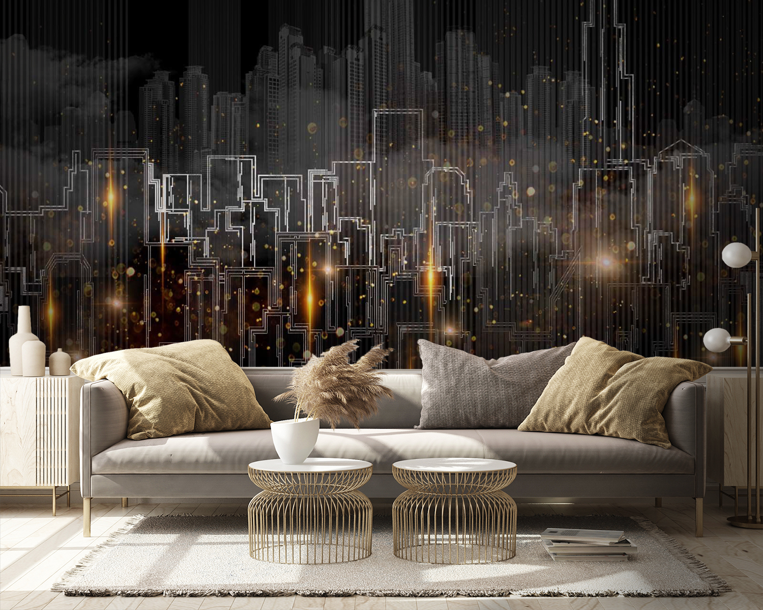 Verander elke kamer in een bruisend stadslandschap met deze boeiende muurschildering. Stel je voor dat je naar een levendige skyline staart, waar abstracte vormen dansen met warme lichten, die een gezellige maar levendige sfeer uitstralen. Perfect voor dat hoekje dat karakter nodig heeft of het thuiskantoor dat een beetje inspiratie nodig heeft. Stel je voor dat een vriend of vriendin langskomt, koffie drinkt en instemmend knikt bij je stijlvolle keuze. De muurschildering brengt een vleugje stedelijke charme die je bijna de hartslag van de stad laat voelen. Het is alsof je een mini-metropool in je eigen ruimte hebt, zonder files.