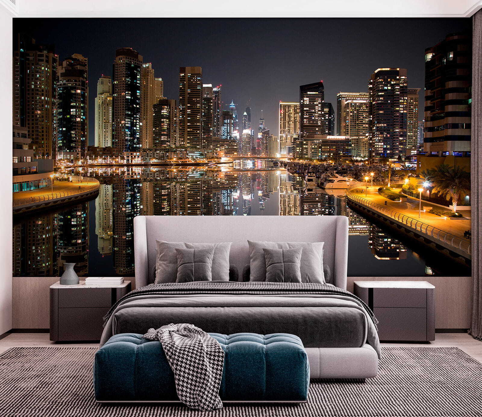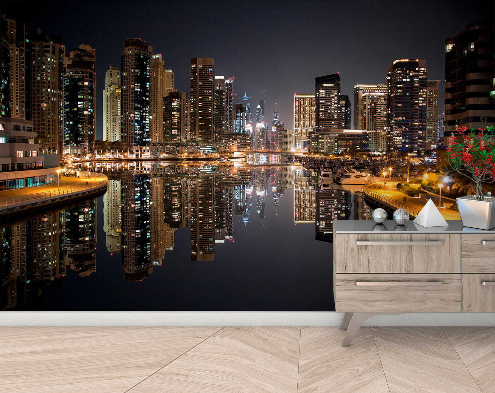 Stel je voor dat je elke avond naar deze muurschildering staart – het is alsof je vanuit je woonkamer naar een bruisende stad gluurt. “Gebouw met veel ramen bij nacht” vangt die serene, maar toch dynamische sfeer van een stadslandschap, perfect voor liefhebbers van een moderne inrichting. De reflecties op het water voegen een vleugje rust toe, waardoor je bijna verlangt naar een rustige nachtwandeling langs de kust. Het heeft die mix van architectuur en een beetje mysterie – wie woont er in die ramen? Ideaal voor iedereen die een vleugje stedelijke magie aan zijn muren wil toevoegen.