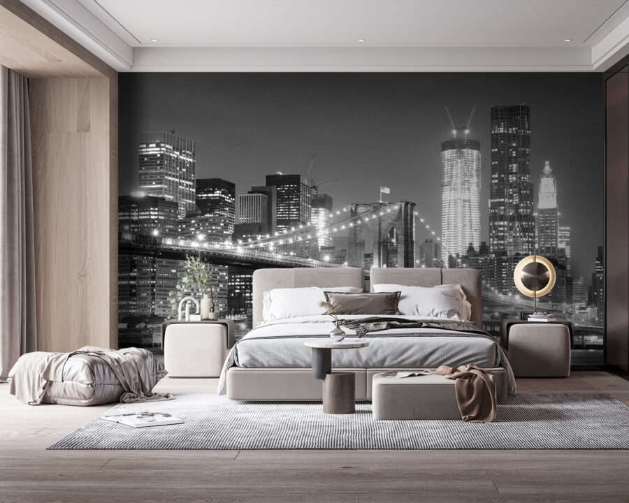 Verander elke muur in een adembenemend uitzicht met deze prachtige muurschildering van een brug over het water, omlijst door een iconische skyline van de stad. Stel je gezellige avonden voor waarin je de lichtjes bewondert die weerspiegelen op het water, of dagdroomt over avonturen in de stad die nooit slaapt. Dit stuk dompelt je onder in die bruisende energie, waardoor je ruimte levendig aanvoelt. Het is alsof je een venster hebt op een bruisende wereld, gewoon bij je thuis. Perfect voor elke kamer – gasten zullen zeker stoppen en staren. Wie wil niet dagelijks dat stadsgevoel voelen? Perfect om creativiteit aan te wakkeren of gewoon om te genieten van een rustig moment.
