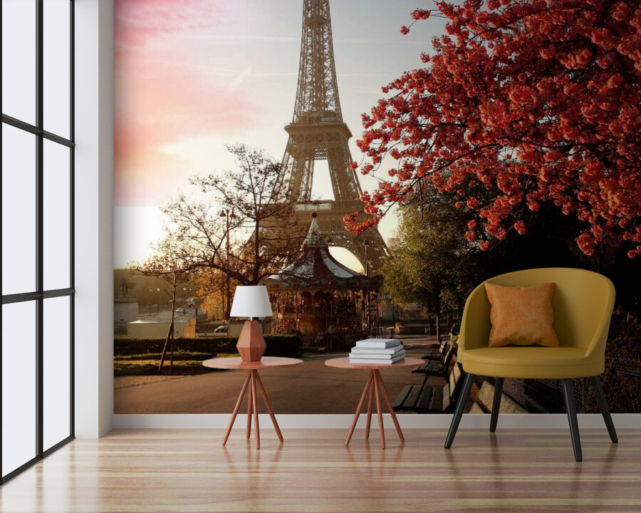 Verander elke muur in een serene ontsnapping met deze “Muurschildering Park met bankjes en een toren”. Stel je voor: je loopt je kamer binnen en daar ligt een uitnodigend park voor je neus – een middagwandeling onder bloeiende bomen, met de Eiffeltoren die als een oude vriend tussen de takken door gluurt. De zachte kleuren creëren een rustige sfeer, perfect om te ontspannen na een lange dag of om creativiteit te stimuleren op een luie ochtend.