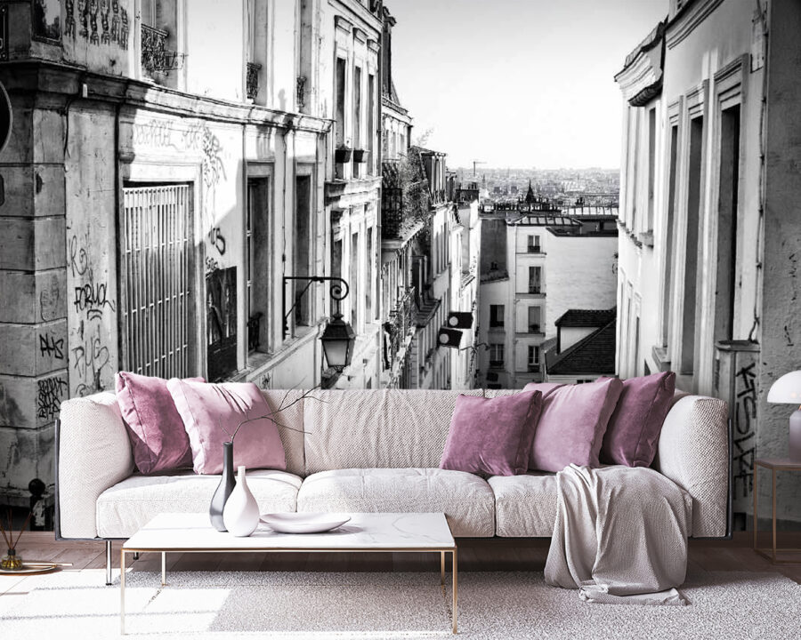 Stap in de charmante sfeer van het stadsleven met deze prachtige muurschildering. Een straatbeeld zorgt voor een gezellige sfeer, compleet met schilderachtige gebouwen en een vintage straatlantaarn – een mooie knipoog naar die avondwandelingen wanneer de zon net ondergaat. Het is bijna alsof je een kijkje neemt in een verborgen steegje waar verhalen zich ontvouwen. Stel je voor dat je koffie drinkt, in gedachten verzonken, terwijl de wereld buiten je raam voorbijtrekt. Deze muurschildering is perfect voor een woonkamer of een gezellig hoekje en brengt warmte en een vleugje avontuur in elke ruimte. Wie zou er niet willen ontsnappen naar dit stukje stadsmagie?
