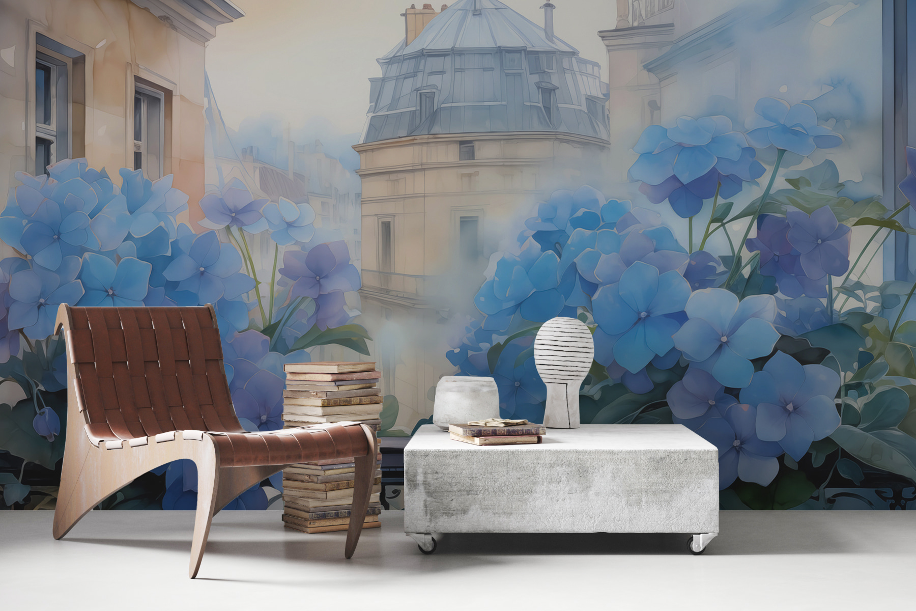 Stel je dit eens voor – een luie zondagochtend met zonlicht dat door je ramen naar beneden druppelt, en boem, daar is deze muurschildering! “Muurschilderingen w01439” brengt een ideale mix van architectuur en natuur, waardoor je ruimte een gezellig uitzicht krijgt dat moeilijk te overtreffen is. Een uitbarsting van blauwe hortensia’s over een charmant balkon met een fluisterend stadslandschap op de achtergrond… het is als een instant ticket naar rust.