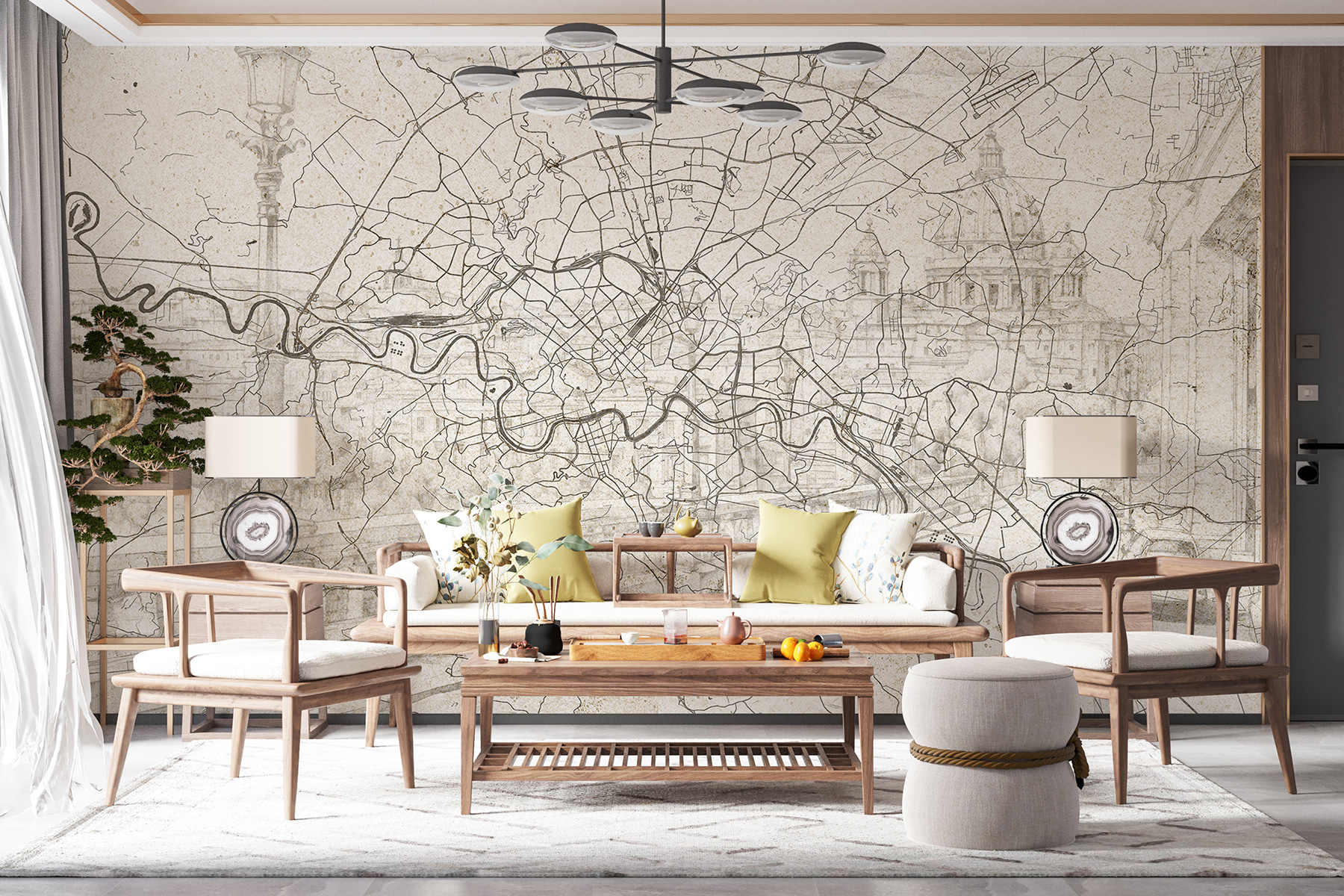 Ooit gedacht dat je zou verdwalen in je eigen woonkamer? De “Map of a City” muurschildering kan van elke muur een mini-avontuur maken. Het is niet zomaar een decorstuk, het is alsof je een venster hebt op een drukke straat, zonder het echte getoeter. Perfect voor iedereen die graag denkbeeldige reizen uitstippelt of gewoon wil doen alsof ze een richtingsgevoel hebben! Met zijn gedetailleerde lijnen en stadse sfeer voegt deze muurschildering een vleugje stedelijke charme toe die verhalen vertelt over talloze paden en verborgen hoekjes. Een gezellige maar avontuurlijke achtergrond voor het vinden van je volgende afhaalplek of dagdroombestemming.