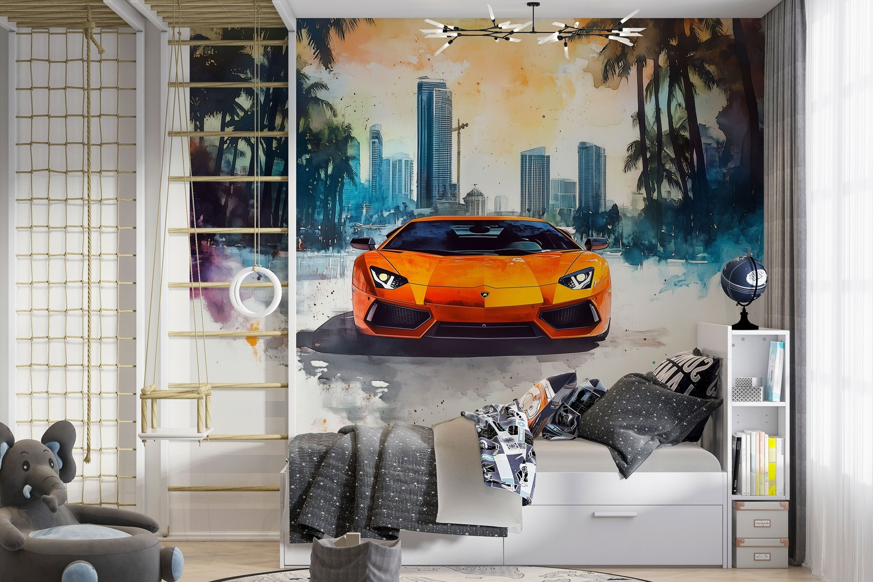 Wek de energie in elke kamer op met deze opvallende muurschildering met een oranje sportwagen die door een besneeuwde achtergrond rijdt. Het is als een uitbarsting van zonneschijn op een kille dag – perfect voor die momenten waarop de winter een beetje te lang aanvoelt. Stel je voor dat je aan warme chocolademelk nipt terwijl je dit levendige kunstwerk bewondert! De strakke lijnen van de auto en de zachte sneeuwvlokken vormen een prachtig contrast. Of je nu een autoliefhebber bent of gewoon van unieke decoraties houdt, deze muurschildering stimuleert gesprekken en maakt een statement. Verander een saaie muur in een opwindende ontsnapping die een vleugje sensatie toevoegt aan het dagelijks leven. Perfect voor een speelkamer, kantoor of waar je maar een dosis avontuur nodig hebt!