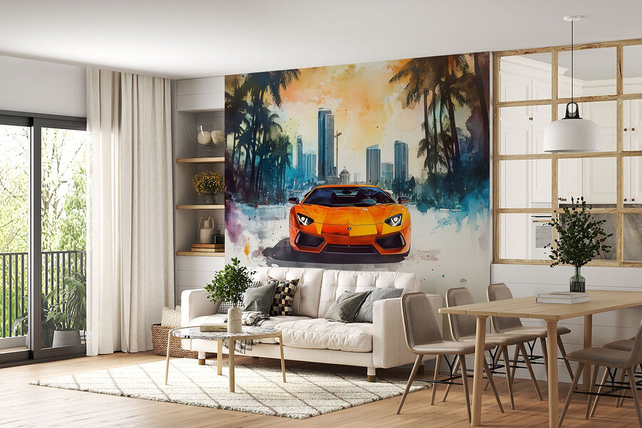 Wek de energie in elke kamer op met deze opvallende muurschildering met een oranje sportwagen die door een besneeuwde achtergrond rijdt. Het is als een uitbarsting van zonneschijn op een kille dag – perfect voor die momenten waarop de winter een beetje te lang aanvoelt. Stel je voor dat je aan warme chocolademelk nipt terwijl je dit levendige kunstwerk bewondert! De strakke lijnen van de auto en de zachte sneeuwvlokken vormen een prachtig contrast. Of je nu een autoliefhebber bent of gewoon van unieke decoraties houdt, deze muurschildering stimuleert gesprekken en maakt een statement. Verander een saaie muur in een opwindende ontsnapping die een vleugje sensatie toevoegt aan het dagelijks leven. Perfect voor een speelkamer, kantoor of waar je maar een dosis avontuur nodig hebt!
