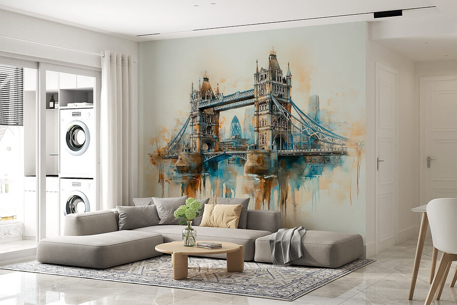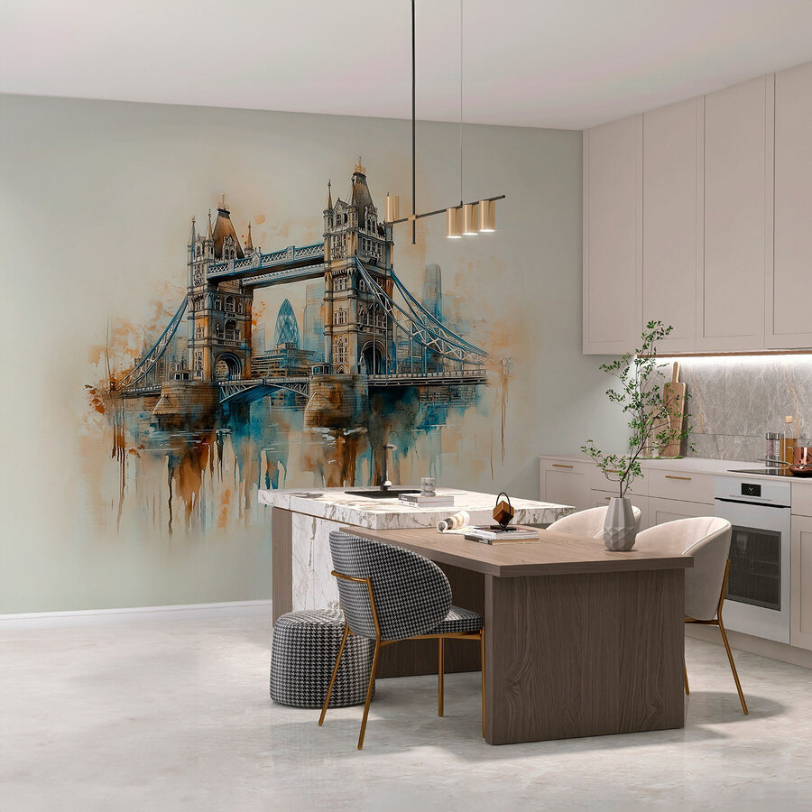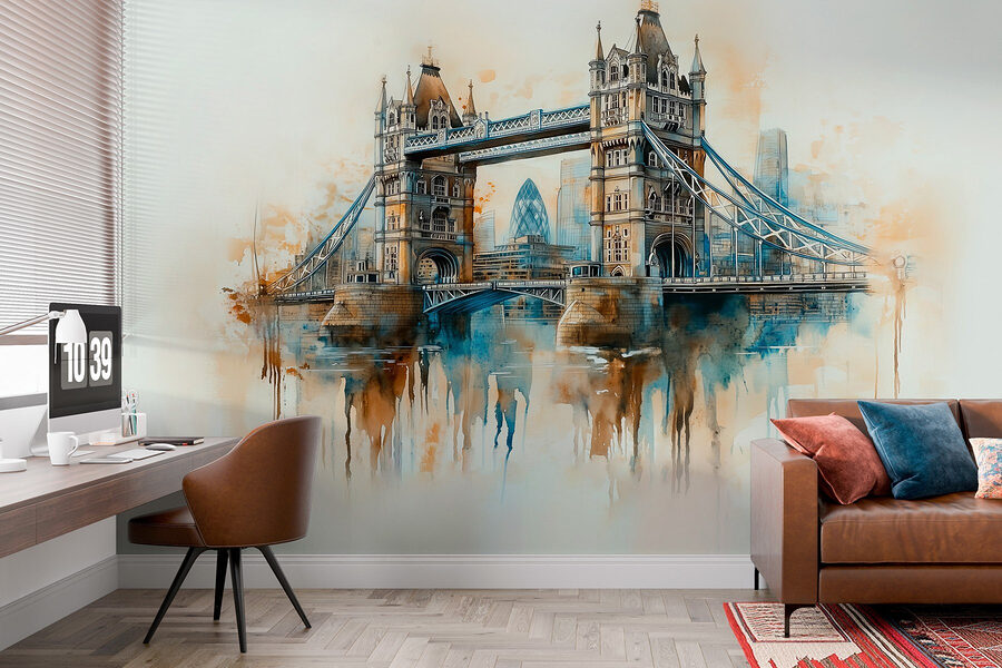 Transformeer je kamer met deze prachtige aquarelmuurschildering van een brug, een heerlijke knipoog naar het stadsleven. Stel je voor: je kamer binnenstappen en begroet worden door een serene, dromerige scène die moeiteloos kleuren mengt en de charme van stadsgezichten vangt. Het is net een mini-vakantie elke keer dat je langsloopt!