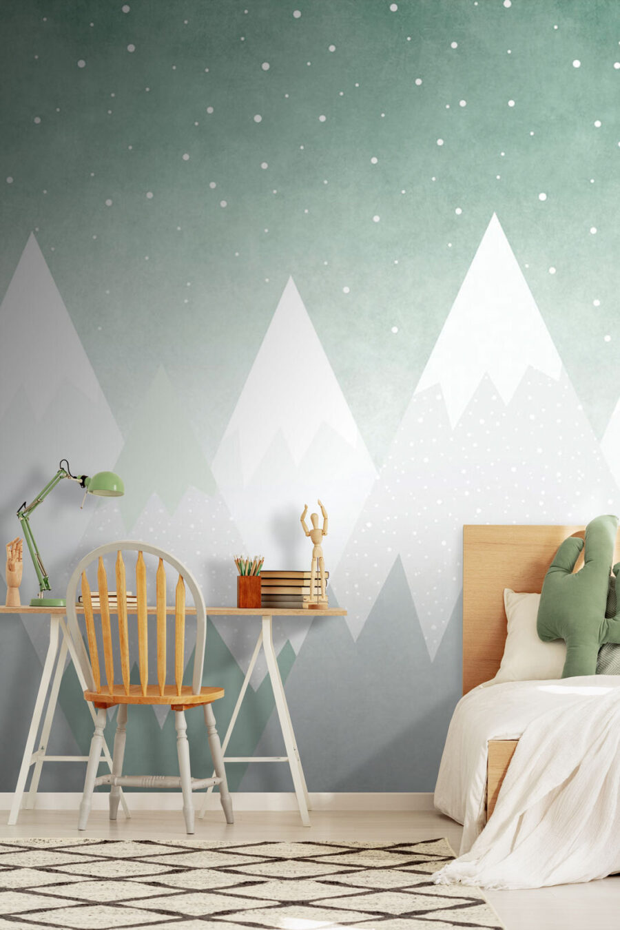 Stel je voor dat je een hele bergketen in huis haalt, maar dan zonder de kou en de zware klimspullen. Deze muurschildering “Groep bergen met sneeuw” is als een vreedzame tocht elke dag, rechtstreeks vanuit je woonkamer. Het is perfect voor het opfleuren van een kinderkamer, de slaapkamer van je zoon of zo’n beetje elke ruimte die een vleugje rust uit de natuur nodig heeft. De zachte besneeuwde toppen tegen een dromerige hemel geven iedereen het gevoel dat ze in een magisch winterlandschap zijn. Bovendien is het een geweldig gespreksonderwerp! Stel je voor: vrienden en familie bewonderen je stijlvolle keuze en jij vertelt terloops hoe je een stukje serene schoonheid in je dagelijkse leven hebt gebracht. Gezellige sfeer gegarandeerd.
