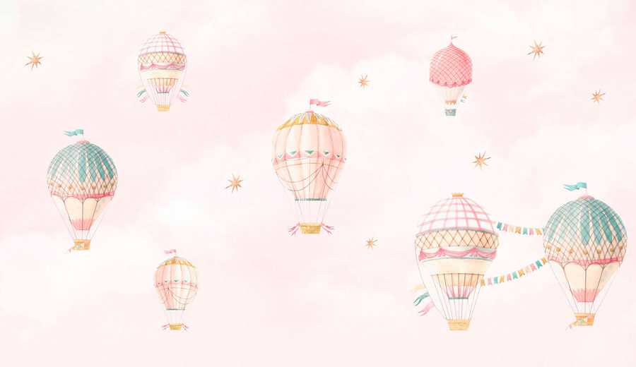 Stel je voor dat je wegzweeft op een dromerig avontuur met deze prachtige muurschildering van heteluchtballonnen die lui langs een pastelkleurige hemel zweven. Het is alsof je in een sprookjesboek stapt, waar elke blik omhoog een vleugje eigenzinnigheid en een vleugje reislust belooft. Perfect om een vleugje magie toe te voegen aan de kamer van je dochter, het zal haar laten dromen van luchten vol mogelijkheden. Elke ballon lijkt verhalen te fluisteren over verre landen en eindeloze horizonten. Een vriendelijke herinnering dat de hemel niet de limiet is – het is slechts het begin!