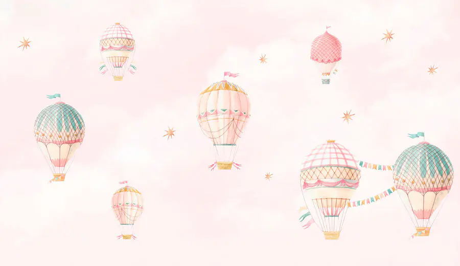 Stel je voor dat je wegzweeft op een dromerig avontuur met deze prachtige muurschildering van heteluchtballonnen die lui langs een pastelkleurige hemel zweven. Het is alsof je in een sprookjesboek stapt, waar elke blik omhoog een vleugje eigenzinnigheid en een vleugje reislust belooft. Perfect om een vleugje magie toe te voegen aan de kamer van je dochter, het zal haar laten dromen van luchten vol mogelijkheden. Elke ballon lijkt verhalen te fluisteren over verre landen en eindeloze horizonten. Een vriendelijke herinnering dat de hemel niet de limiet is – het is slechts het begin!
