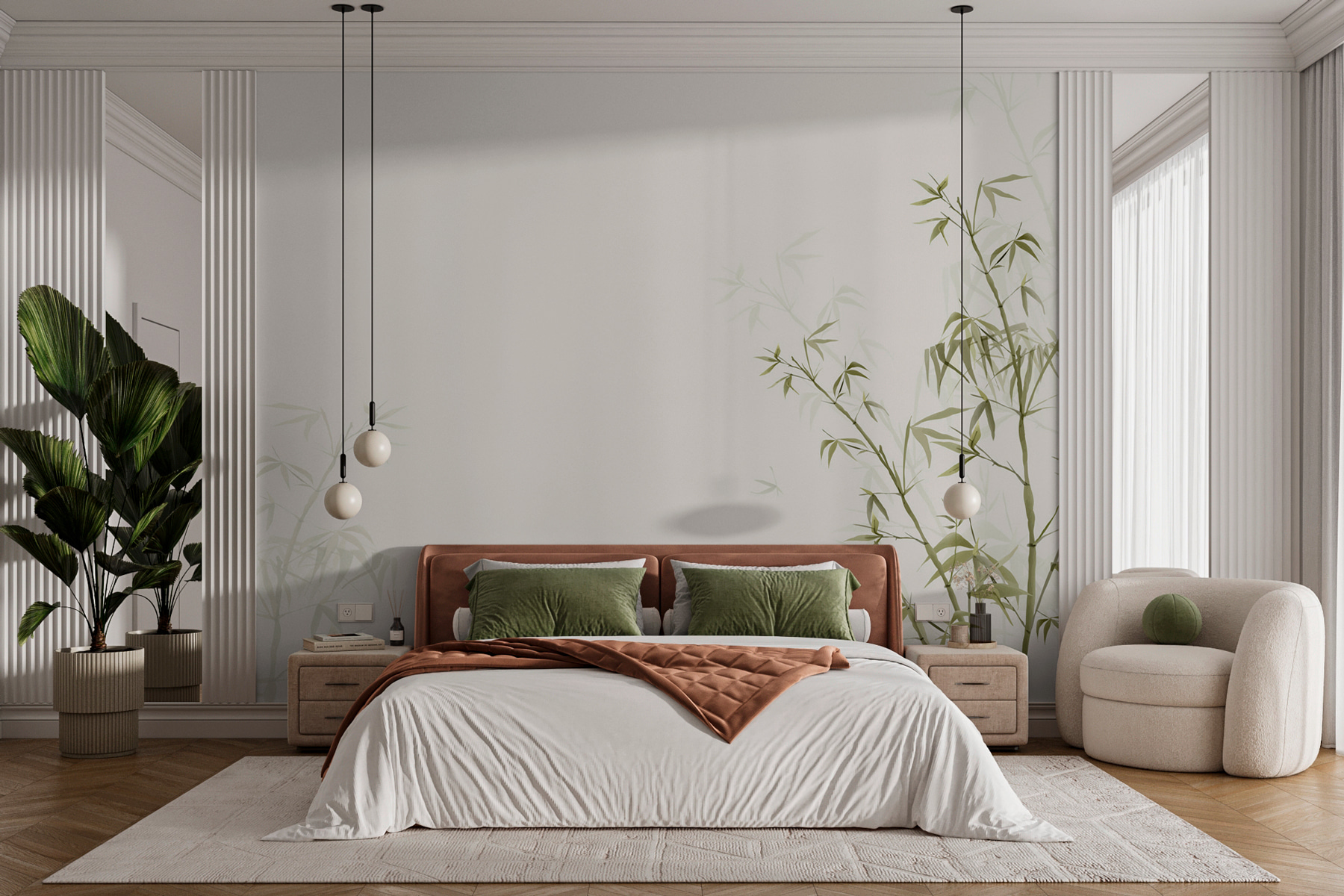 Transformeer elke ruimte met deze prachtige bamboemuurschildering. De zachte groene tinten tegen een zachte achtergrond creëren een rustgevende sfeer die aanvoelt als een frisse wind – perfect voor woonkamers, slaapkamers of zelfs een gezellige leeshoek. Stel je voor dat je thee drinkt omringd door de ruisende bladeren van dit serene ontwerp. Het is alsof je een beetje natuur in huis haalt zonder dat je planten water hoeft te geven. Bovendien geeft het de illusie van meer ruimte, waardoor zelfs de kleinste kamers luchtig aanvoelen. Zeg maar dag tegen saaie muren en hallo tegen een verfrissende ontsnapping thuis.