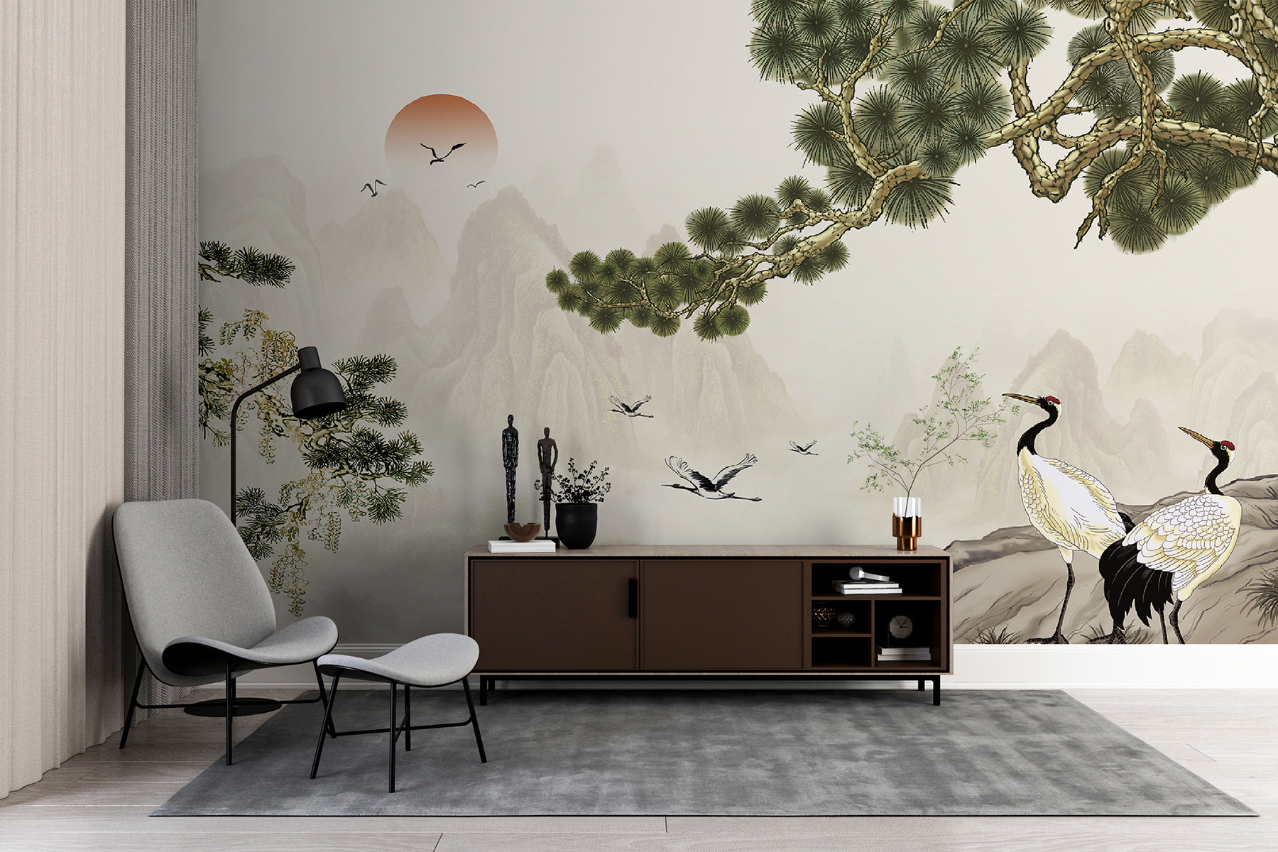 Stel je voor dat je een vleugje natuur op je muur hebt – zo voelt deze muurschildering! “Vliegende vogels in de lucht” is niet zomaar een kunstwerk… het is een verademing voor je kamer. Deze sierlijke vogels glijden door de mistige bergen – het is alsof je een serene ochtendwandeling naar binnen brengt. Zachte tinten en zachte lijnen maken het vredig, perfect voor een slaapkamer of een andere relaxplek. En die bomen! Ze hullen je in een knusse, bosachtige sfeer. Zie je het voor je? Wakker worden met dit uitzicht, je ontspannen voelen, een beetje avontuurlijk… als een mini-vakantie elke dag! Bovendien zit het in de categorieën “Mountains Fotobehang” en “Popular Fotobehang”, dus het heeft ook een stijlvol tintje. Gemakkelijk op te hangen en totaal transformerend!