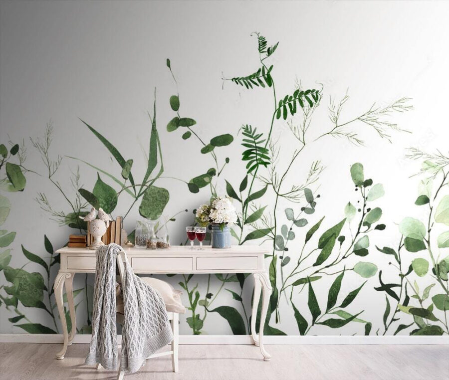 Bedenk eens hoe het voelt om wakker te worden met een muur versierd met delicate, bladmotieven – alsof je slaapt in een chique, serene tuin. Of misschien probeer je een vleugje natuurlijke elegantie aan je ruimte toe te voegen zonder de hele kamer opnieuw in te richten. Met deze muurschildering heb je alles onder controle. Er zijn verschillende groentinten gebruikt om diepte en interesse toe te voegen zonder de zintuigen te overweldigen. Perfect voor een opfrisbeurt, of je nu een plantenliefhebber bent zonder groene vingers of gewoon iemand die een rustige, stijlvolle omgeving waardeert. Het is het soort kunst dat je aandacht trekt en je het gevoel geeft dat Moeder Natuur zelf de hand heeft gehad in je inrichting.