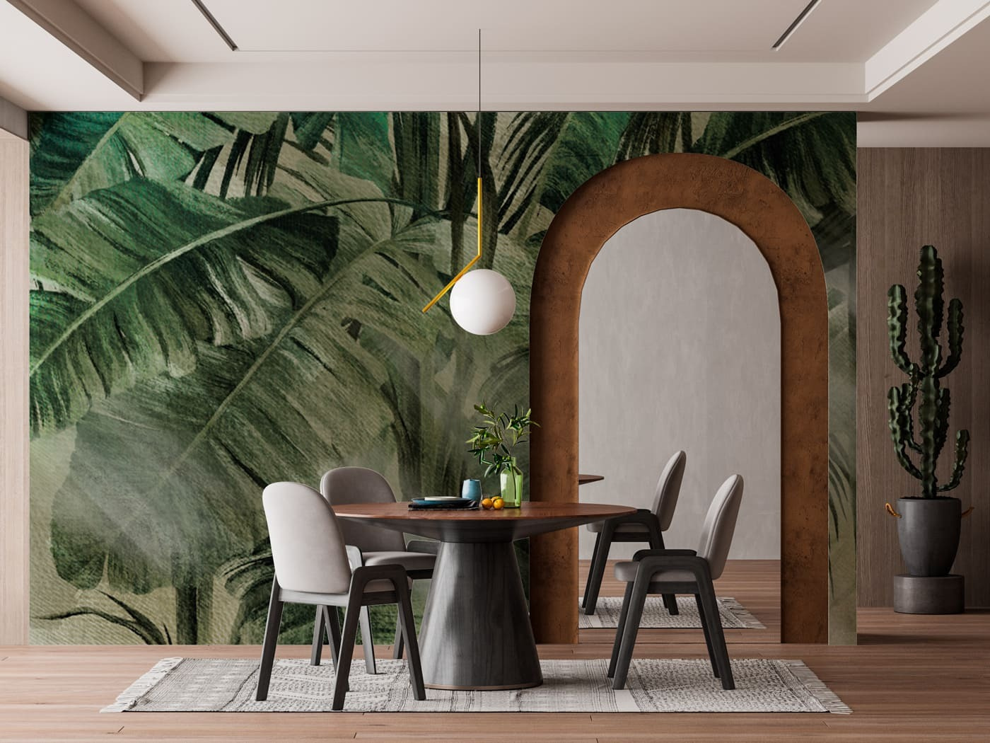 Stel je voor dat je wakker wordt en het eerste wat je ziet is zonlicht dat door weelderige, groene bladeren stroomt, precies op je muur. Deze muurschildering voelt alsof je een stukje tropisch paradijs in huis hebt gehaald. Je hebt geen vakantie nodig om die eilandvibes te krijgen – het is er allemaal, in je woonkamer, slaapkamer of waar je maar wilt. Het is niet zomaar een kunstwerk; het is een transformatie. De grote palmbladeren wiegen bijna en werpen zachte schaduwen die lijken te dansen in het zonlicht. Je zou bijna verwachten dat je vogeltjes hoort tsjilpen! Perfect voor iedereen die ervan droomt om omringd te zijn door de natuur, zelfs op een maandagochtend.