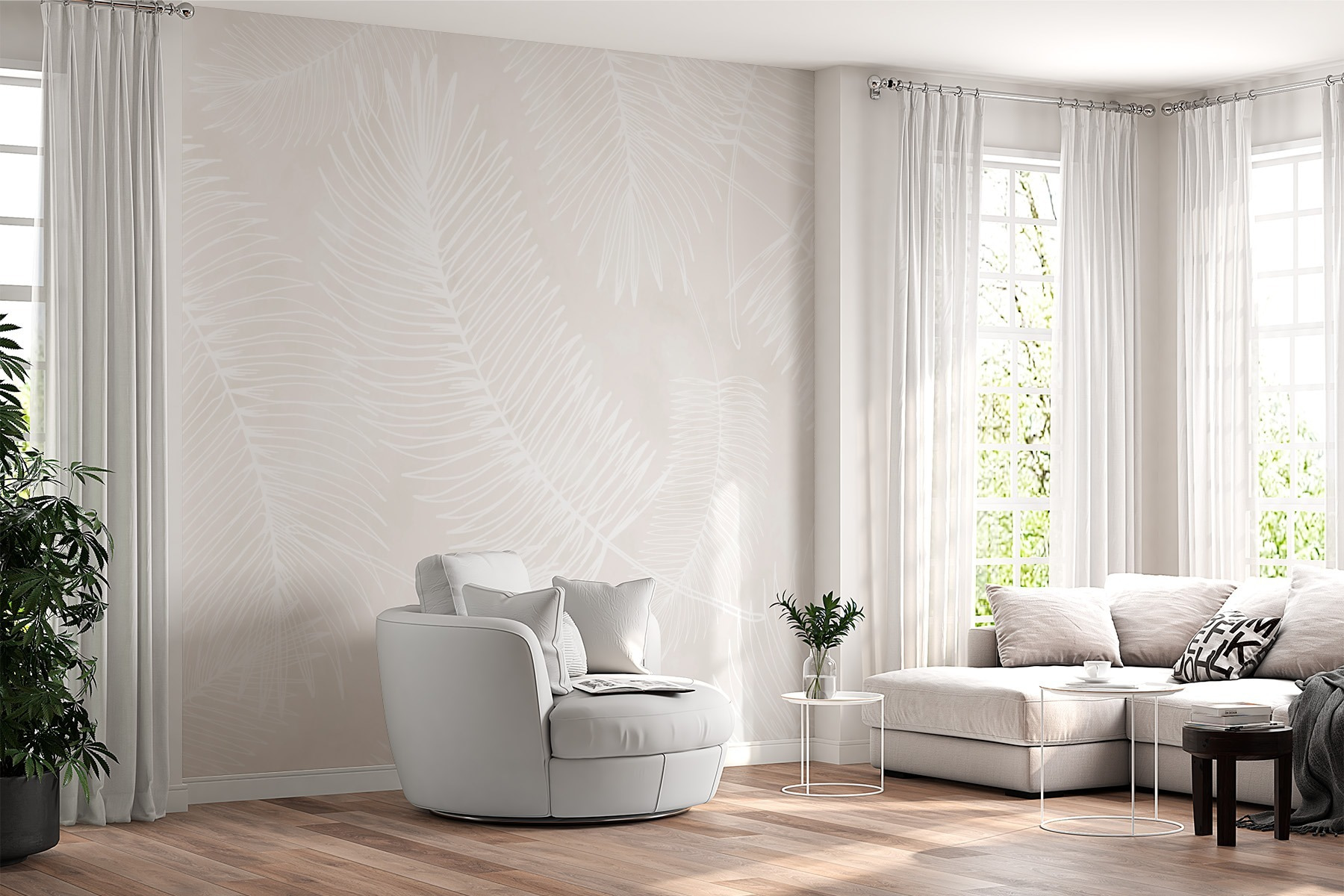 Transformeer je ruimte met de “Fotobehang White Pattern of Leaves”. Dit is niet zomaar decoratie; het is alsof je een vleugje natuur in huis haalt zonder dat je planten water hoeft te geven. Stel je voor dat je een kamer binnenloopt waar delicate, witte bladpatronen over de muren dansen en verhalen vertellen over rustige bossen. De zachte tinten passen moeiteloos bij elke interieurstijl en geven die luchtige sfeer waar we allemaal naar hunkeren. Deze muurschildering is perfect om een rustig leeshoekje of een gezellige woonkamer op te fleuren en nodigt iedereen uit om diep adem te halen en te ontspannen. Het is als een knuffel voor je muren – wie wil dat nou niet? Het is een lust voor het oog en voelt oh-zo-chic aan.
