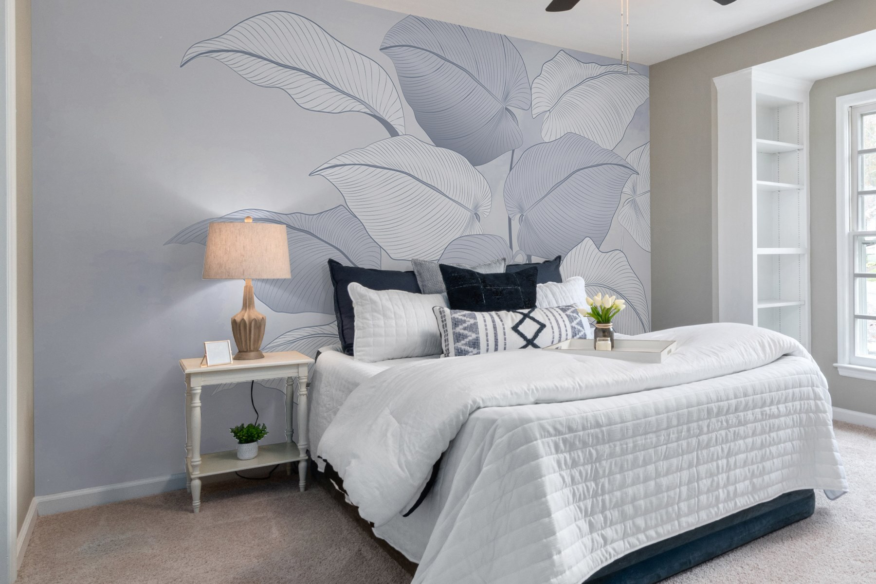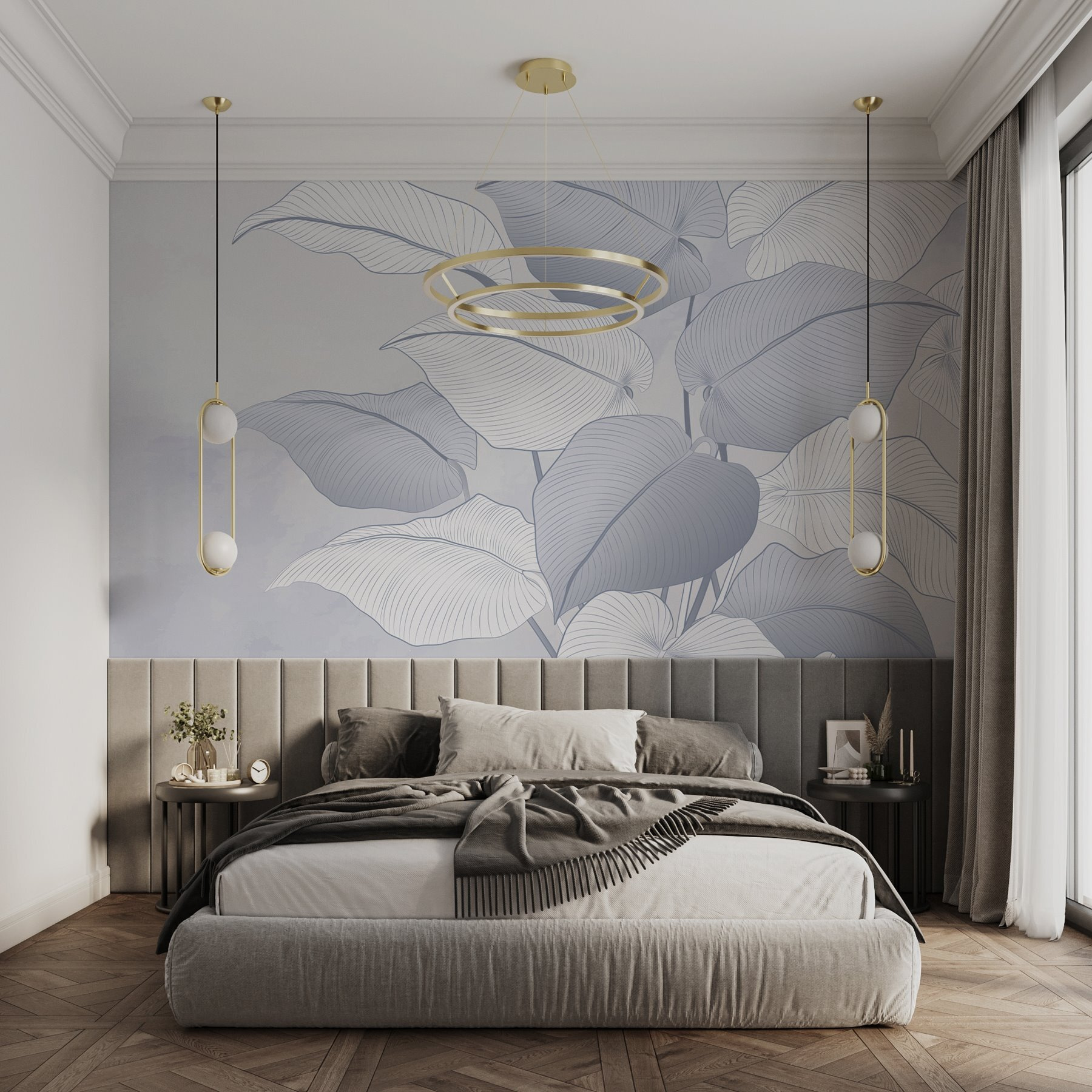 Maak van elke kamer een serene plek met de muurschildering “Delicate Leaves in Soft Hues”. Deze schoonheid spat zacht groen en zacht blauw over je muur, als een fluistering van de natuur zelf. Stel je voor dat je thee drinkt terwijl je omringd bent door deze elegante bladeren en de rust over je heen voelt komen. Het is perfect voor momenten waarop het leven een beetje te rumoerig of chaotisch wordt. En, wat een geweldige gespreksstarter! Vrienden zullen zich afvragen of je van de ene op de andere dag een botanisch kunstenaar bent geworden. Echt, deze muurschildering voelt als een frisse wind door je ruimte.
