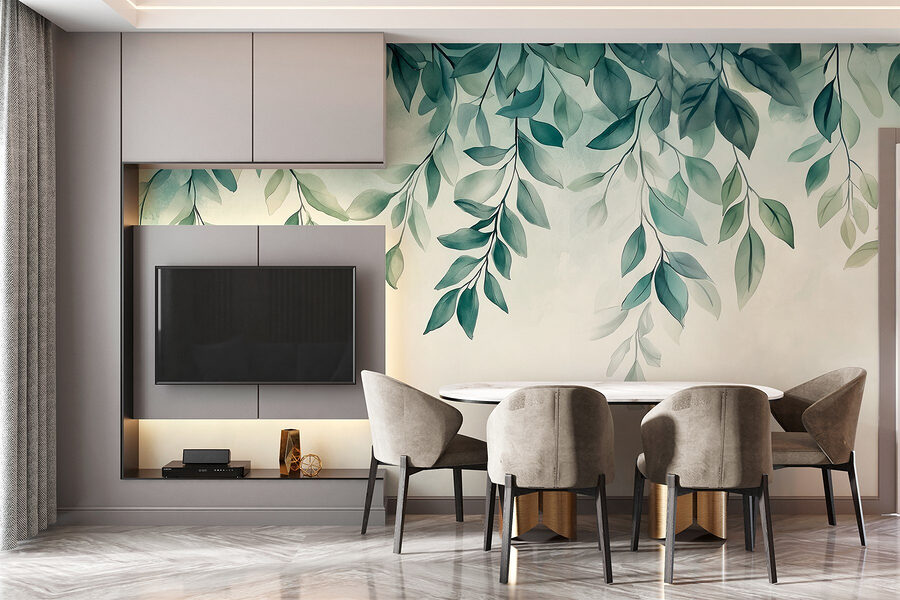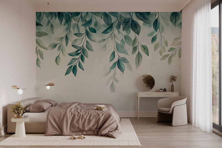 Transformeer uw ruimte met de muurschildering “Serene Green Foliage Overhead” – het is alsof u een rustig bos in huis haalt. Stel u voor dat u wakker wordt en het gevoel hebt dat u onder een bladerdak ligt, terwijl u koffie drinkt en de natuur u liefkozende woordjes toefluistert. De zachte tinten creëren een rustgevende sfeer, perfect om te ontspannen na een lange dag of om uw creativiteit te stimuleren tijdens het werk. Bovendien hoeft u geen water te geven! Of het nu in een gezellig leeshoekje is of in een druk thuiskantoor, deze muurschildering omhult u met rust. Vrienden zullen ervan overtuigd zijn dat u uw huis in een geheime tuin hebt veranderd. Wie had gedacht dat decoratie zo verfrissend kon zijn?