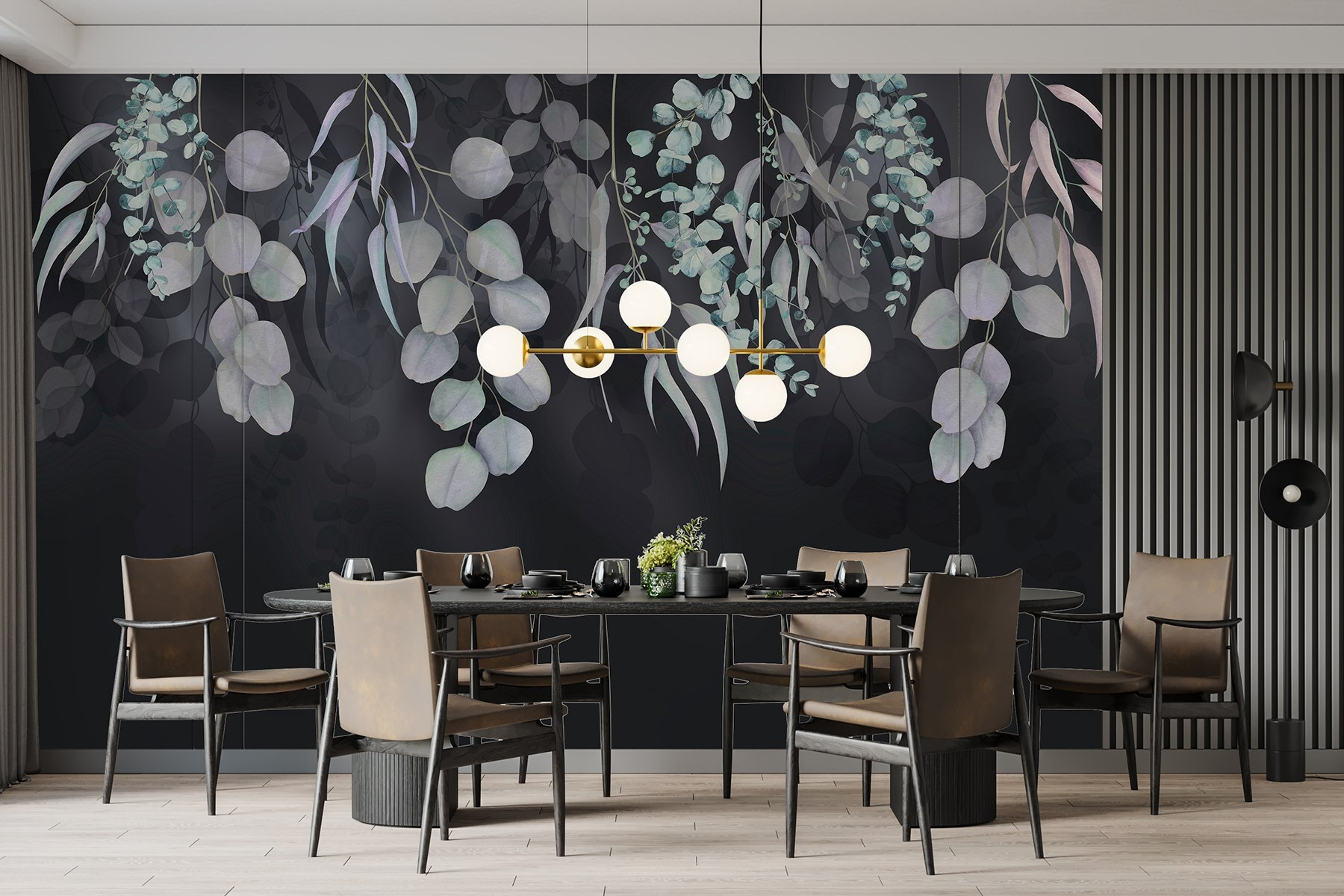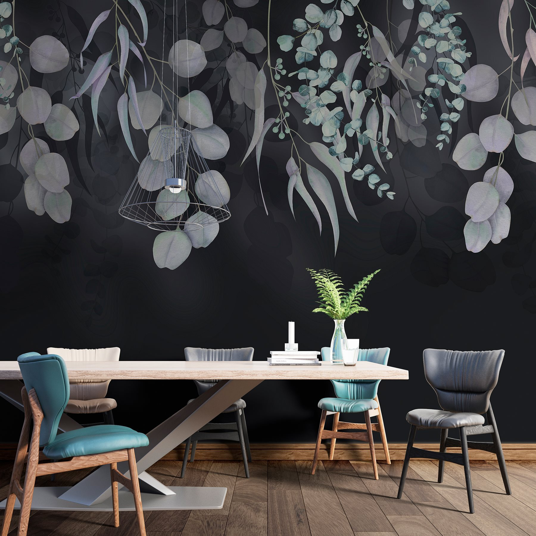 Transformeer je ruimte met deze betoverende muurschildering, “Zachte bladeren tegen een donkere achtergrond”. Stel je voor dat je een serene tuin binnenstapt waar de bladeren zachtjes wiegen onder een zacht verlichte hemel. Deze muurschildering brengt dat gevoel binnenshuis, door aardachtig groen en gedempt blauw te mengen tegen een rijk, donker canvas. Het voegt diepte en mysterie toe, als een fluistering van de natuur die je verwelkomt. Perfect voor gezellige hoekjes of opvallende muren, het nodigt uit tot zachte vibes en bedachtzame gesprekken, en verandert elke kamer in een vredig toevluchtsoord. Wie wist dat decoreren zo moeiteloos en rustgevend kon zijn?