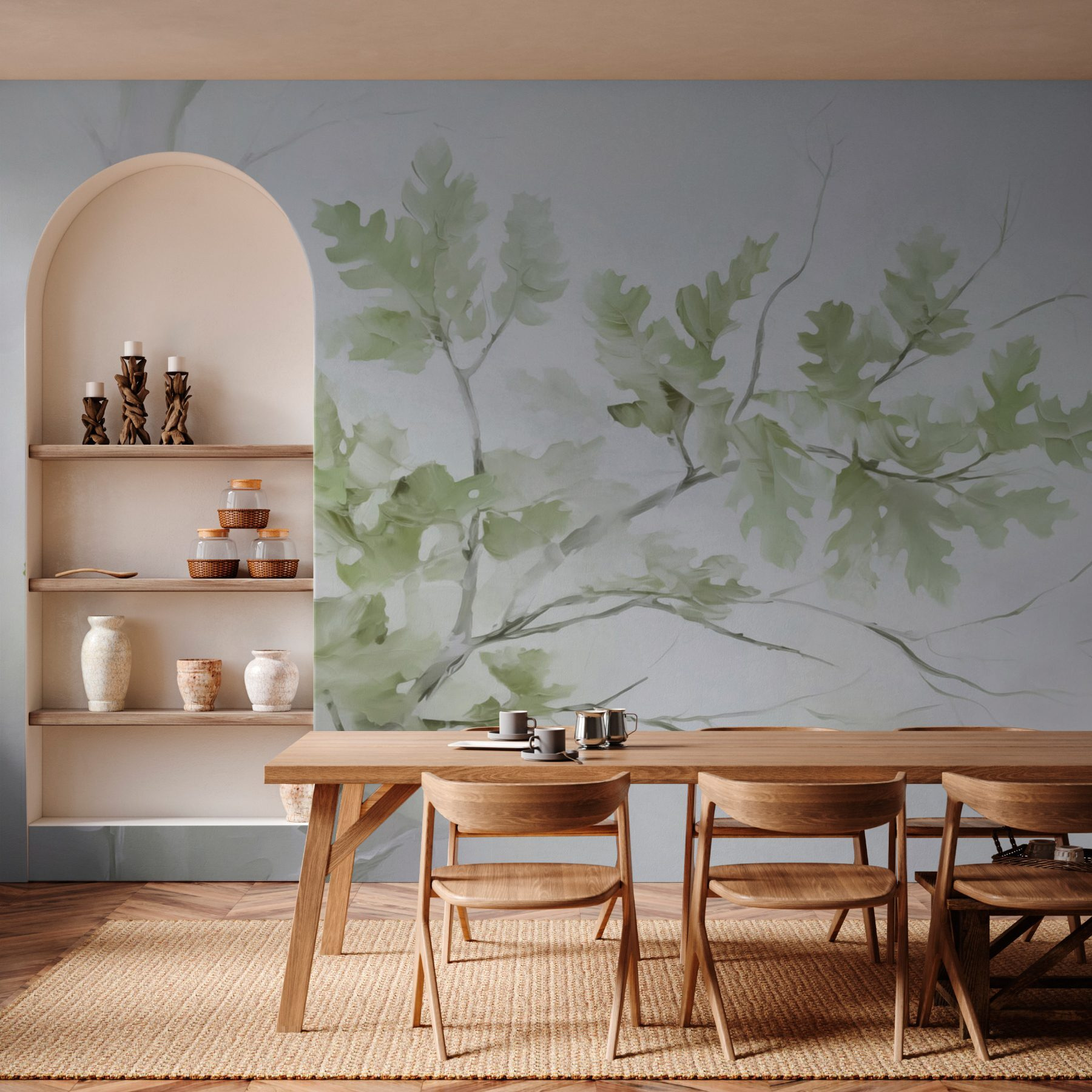 Verander elke kamer in een serene oase met deze boeiende muurschildering van een boomtak versierd met delicate bladeren. Stel je voor dat je wakker wordt met deze zachte herinnering aan de natuur, zacht groen dat kalmte fluistert tegen een subtiele achtergrond. Het is alsof je een klein bos in huis hebt – perfect om naar te staren terwijl je van je ochtendkoffie nipt of tot rust komt na een lange dag. Past perfect bij knusse hoekjes en moderne ruimtes. Misschien betrap je jezelf er wel op dat je dagdroomt over vredige middagen onder een boom, terwijl de wereld vervaagt. Het is meer dan alleen decoratie – het is een uitnodiging om te ontspannen en adem te halen.