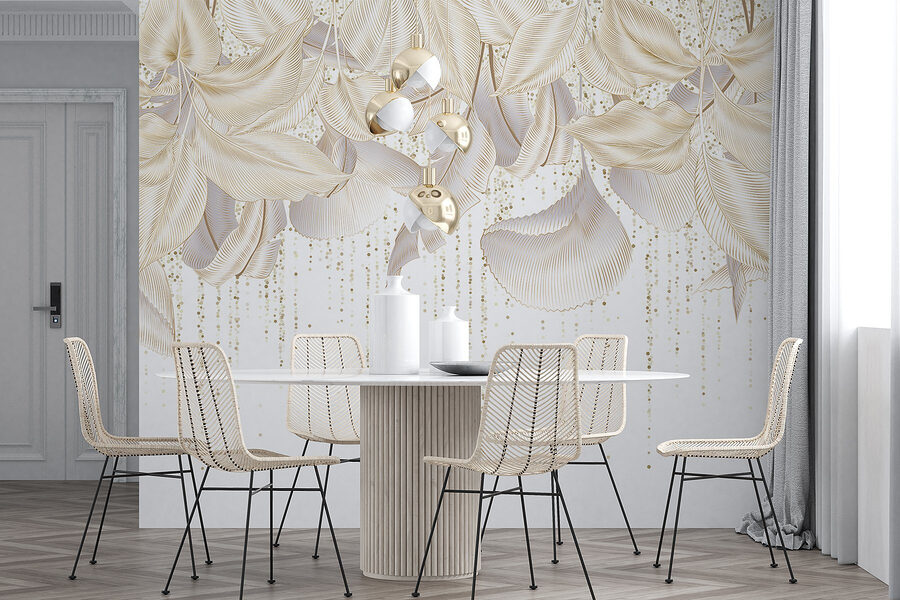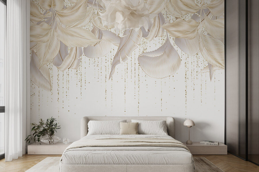 Transformeer je ruimte met de betoverende muurschildering “Delicate Leaves in Soft Arrangements”. Het is alsof je een winderige tuin binnenshuis haalt, waar elke blik aanvoelt als een serene ontsnapping. Het zachte kleurenpalet danst zachtjes en doet denken aan een warme lentedag. Stel je voor dat je koffie drinkt terwijl je geniet van deze rustige achtergrond, perfect voor luie middagen of creatieve brainstormsessies. Perfect voor elke kamer, het voegt een verfrissende touch toe die elegantie uitstraalt. Je zou zelfs kunnen vergeten dat je binnen bent – wie heeft er een raam nodig als je dit lommerrijke genot hebt? Laat je muren een verhaal van rust en schoonheid vertellen.