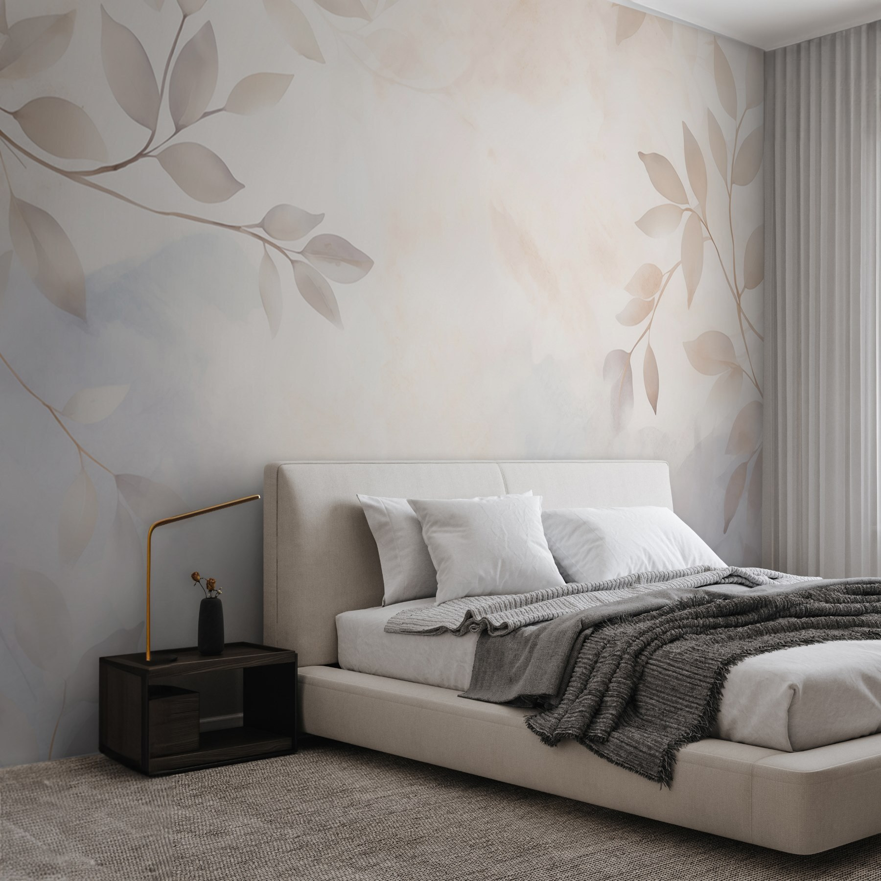 Stel je voor dat je een kamer binnenstapt die aanvoelt als een serene ontsnapping, waar zachte witte en grijze bladeren over een zachte achtergrond dansen. Deze muurschildering is niet zomaar een decoratie; het is als een fluistering van de natuur die een kalme sfeer brengt in elke ruimte. Stel je een knus leeshoekje voor, waar de bladeren zich om je heen wikkelen, waardoor elke bladzijde omslaan nog betoverender aanvoelt. Het is het soort ontwerp dat een stille vreugde opwekt, zoals een warme kop thee op een regenachtige middag. Deze muurschildering is perfect voor elke plek die een vleugje frisheid kan gebruiken en brengt muren tot leven zonder de show te stelen. Een beetje elegantie, veel rust. Wat is er niet leuk aan?