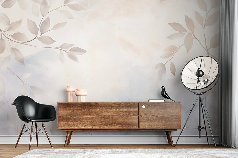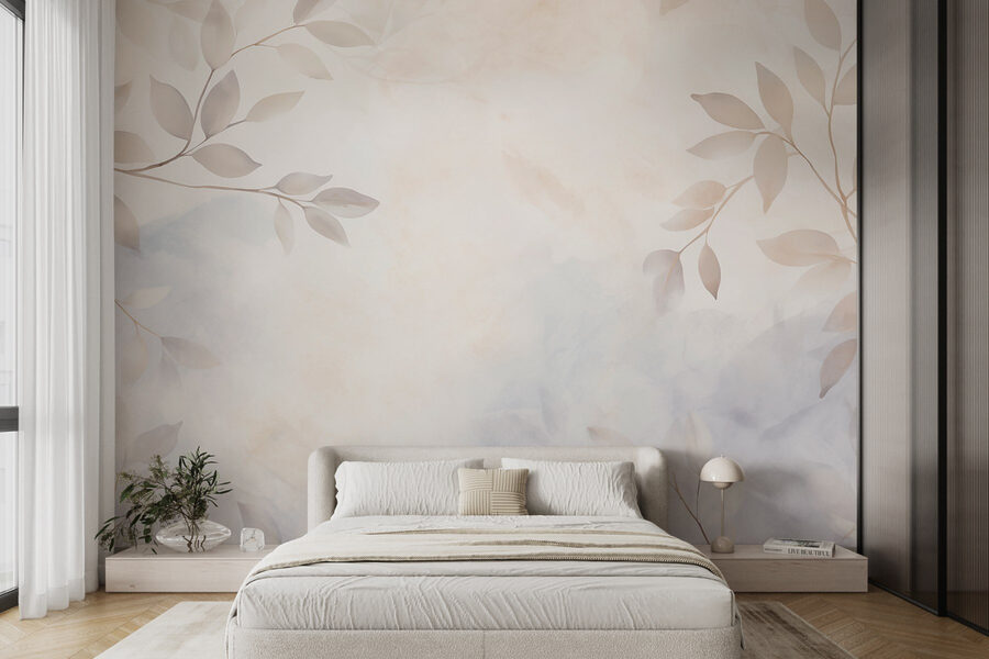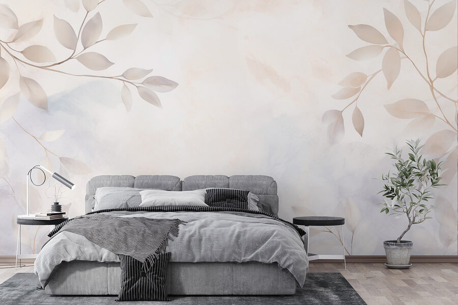 Stel je voor dat je een kamer binnenstapt die aanvoelt als een serene ontsnapping, waar zachte witte en grijze bladeren over een zachte achtergrond dansen. Deze muurschildering is niet zomaar een decoratie; het is als een fluistering van de natuur die een kalme sfeer brengt in elke ruimte. Stel je een knus leeshoekje voor, waar de bladeren zich om je heen wikkelen, waardoor elke bladzijde omslaan nog betoverender aanvoelt. Het is het soort ontwerp dat een stille vreugde opwekt, zoals een warme kop thee op een regenachtige middag. Deze muurschildering is perfect voor elke plek die een vleugje frisheid kan gebruiken en brengt muren tot leven zonder de show te stelen. Een beetje elegantie, veel rust. Wat is er niet leuk aan?