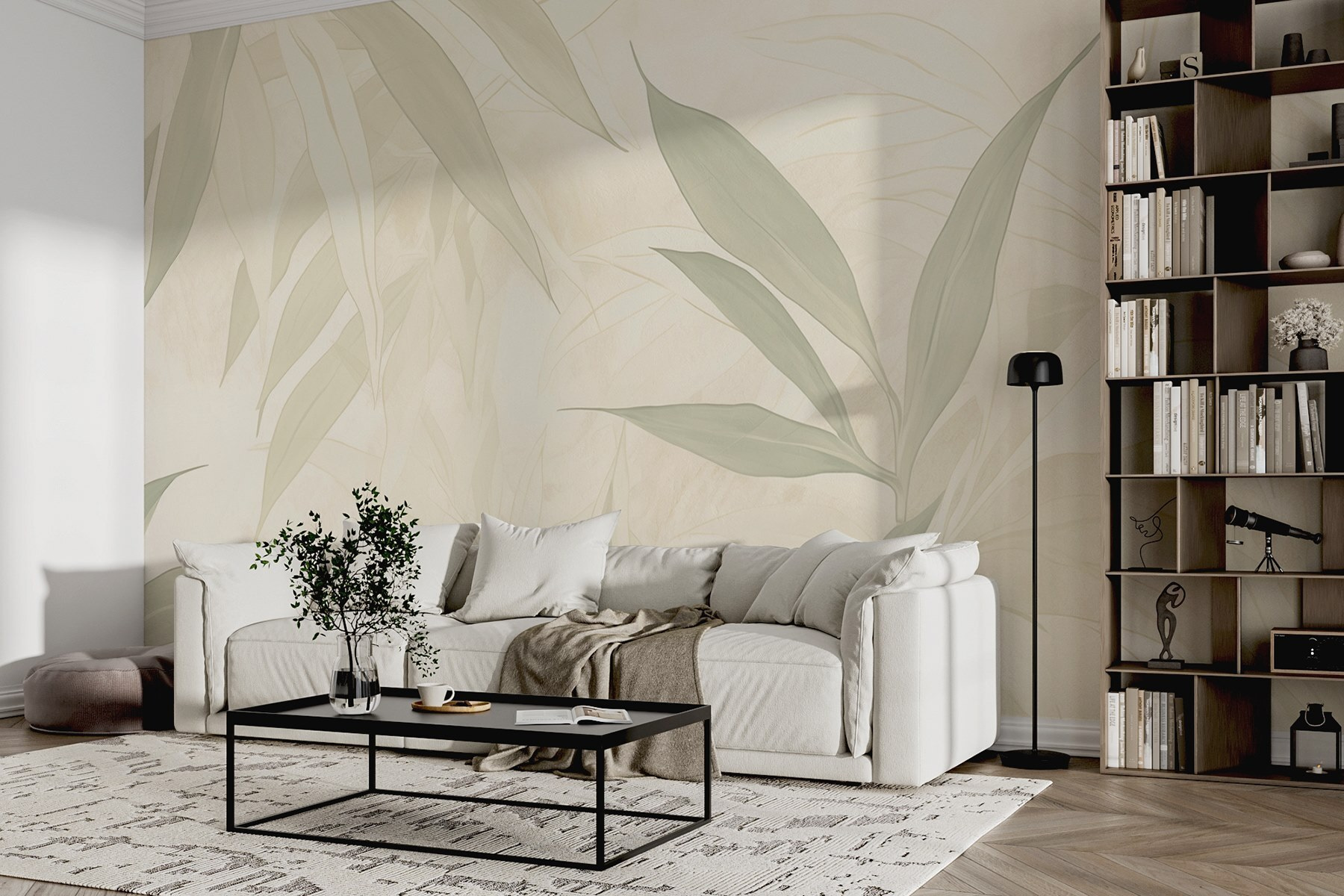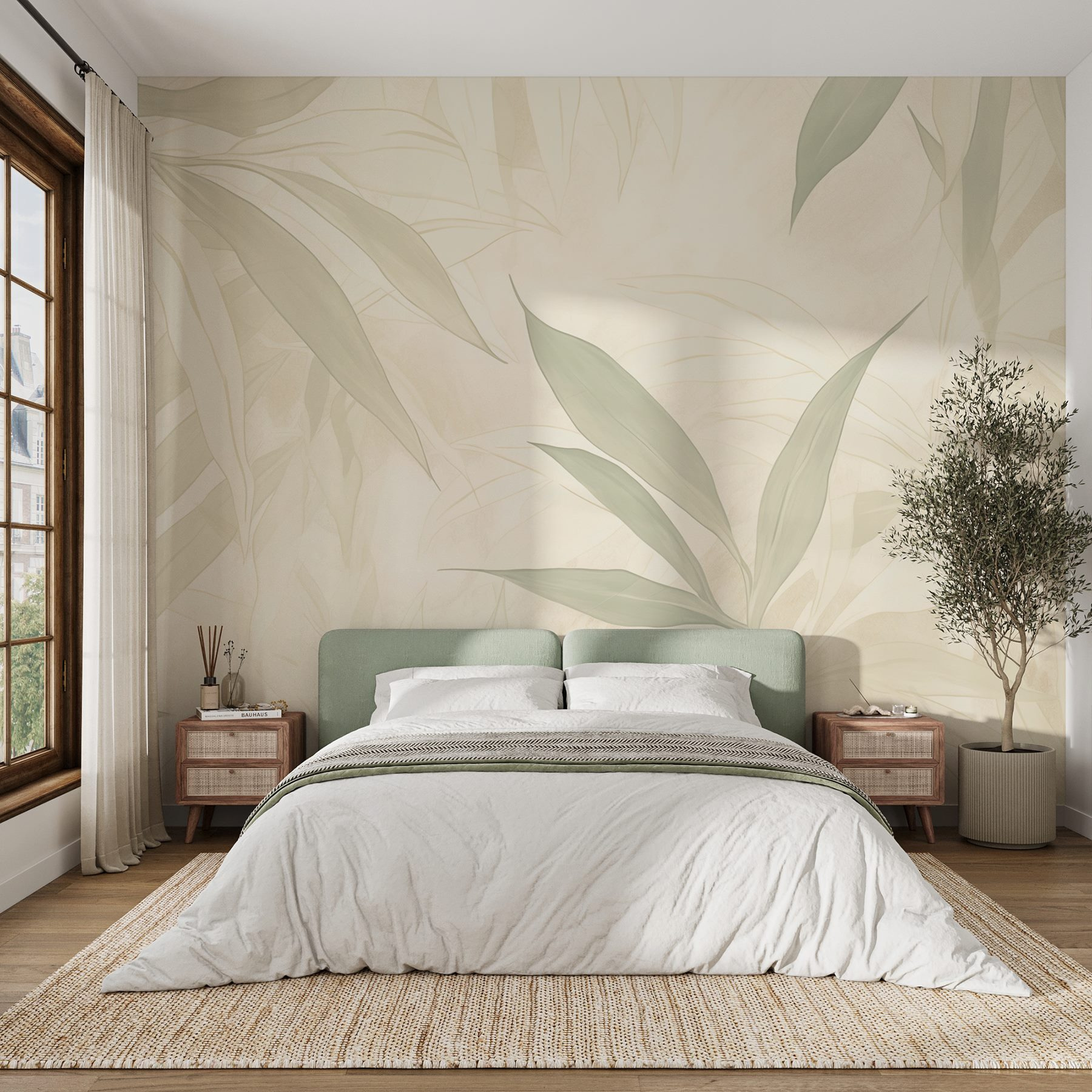 Verander elke kamer in een gezellig toevluchtsoord met deze betoverende muurschildering van zachte bladeren. Het is alsof je een stukje natuur in huis haalt, zonder het vuil. De zachte kleuren creëren een rustgevende sfeer, waardoor het perfect is voor een woon- of slaapkamer. Stel je voor: lekker wegkruipen met een goed boek, omringd door deze bladerrijke achtergrond. Elke blik voelt als een beetje frisse lucht, alsof er net een zacht briesje doorheen waait. Het is niet zomaar behang; het is een sfeermaker en een dagelijkse herinnering om te ontspannen en tot rust te komen – het leven is te kort om je niet thuis te voelen, toch? Stel je eens voor hoe de ruimte verandert!