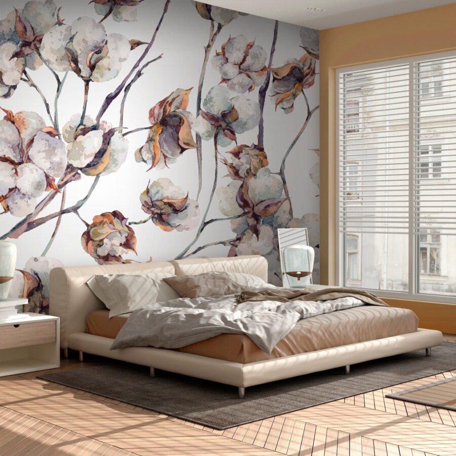 Transformeer je kamer met deze prachtige muurschildering met katoenen bloemen. Stel je voor dat je een gezellige kamer binnenstapt die aanvoelt als een frisse wind! Deze delicate bloemen verzachten de sfeer, waardoor zelfs de zwaarste dagen wat lichter aanvoelen. Bovendien heeft katoen iets heerlijk nostalgisch, zoals herinneringen aan zonnige dagen en een zacht briesje.