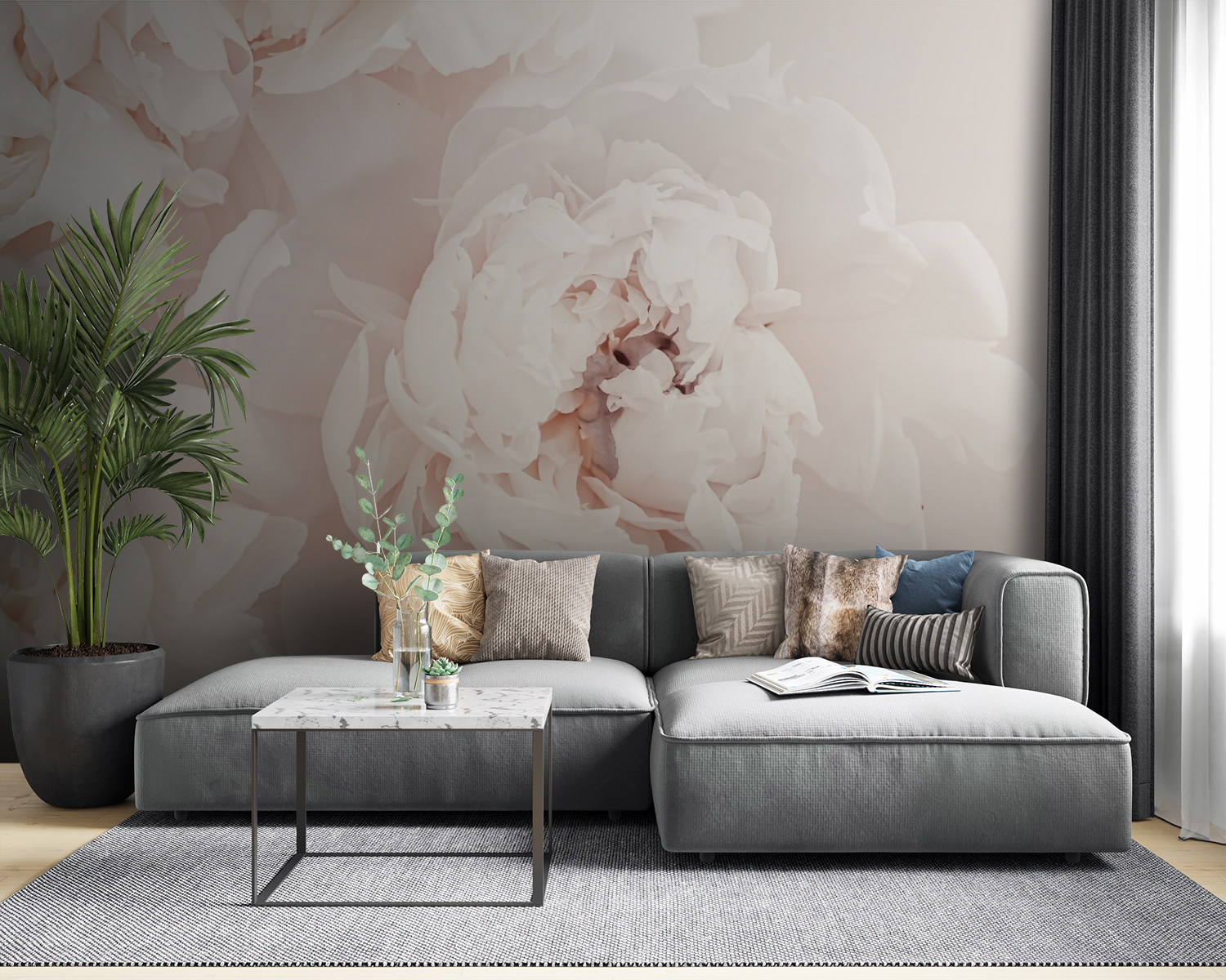 Stel je voor dat je je kamer binnenloopt en dit ziet: grote, zachte pioenbloesems die speciaal voor jou opengaan. De muurschildering “White Peony Blooms Softly Unfurl” uit onze Flowers-collectie is alsof je een stukje van een prachtige tuin op je muur hebt. Het is perfect voor iedereen die van de natuur houdt maar geen planten water wil geven. De dromerige witte bloemblaadjes brengen een frisse, rustgevende sfeer in elke ruimte – het is als een zachte knuffel van Moeder Natuur. Perfect voor een slaapkamer, woonkamer of zelfs een rustig hoekje voor wat ‘me-time’. Het is rustgevend, elegant en gewoon prachtig om naar te kijken. Misschien kijk je er wel naar, in gedachten verzonken, en voel je je een beetje vrediger. Bovendien is het een geweldige achtergrond voor al die gezellige momenten en gesprekken die je ervoor zult hebben. Laat je muren bloeien – geen groene vingers nodig!