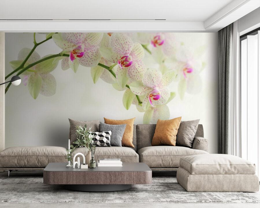 Verander elke saaie muur in een serene ontsnapping met deze prachtige muurschildering met orchideeën die weerspiegelen in rustig water. Stel je voor dat je elke dag wakker wordt en begroet wordt door de zachte tinten en kabbelende rimpelingen die een oase van rust oproepen in je eigen huis. Het is alsof je een stukje natuurschoon hebt, zonder het gedoe van planten water geven of je zorgen maken over zonlicht. Vrienden zullen langskomen en zich afvragen hoe je zo’n heerlijke sfeer hebt weten te creëren – verklap het geheim en kijk hoe ze zwijmelen! Deze muurschildering is perfect voor een gezellige woonkamer of een dromerige slaapkamer en nodigt uit tot rust. Het draait allemaal om het creëren van een vredig toevluchtsoord waar elke blik aanvoelt als een frisse wind. Met een beetje bloemenmagie kom je een heel eind, nietwaar?