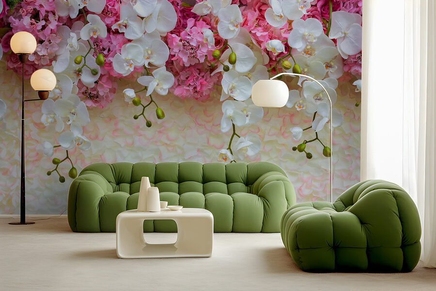 Tover je ruimte om in een weelderig lenteparadijs met de “Wandschilderij van Orchideeën die trapsgewijs over roze bloemen hangen”. Het is alsof je een tuin binnenstapt telkens als je de kamer binnenloopt. De delicate orchideeën hangen over de levendige roze bloemen en creëren een dromerige, romantische sfeer. Stel je voor dat je ‘s ochtends koffie drinkt met dit uitzicht – instant moodbooster, toch? Het is niet zomaar een muurschildering; het is een hele ervaring. Perfect om een vleugje natuur toe te voegen, zelfs als je midden in de stad zit. Ideaal voor slaapkamers, woonkamers of zelfs een gezellig leeshoekje. Gewoon een stukje bloemenparadijs op je muur.