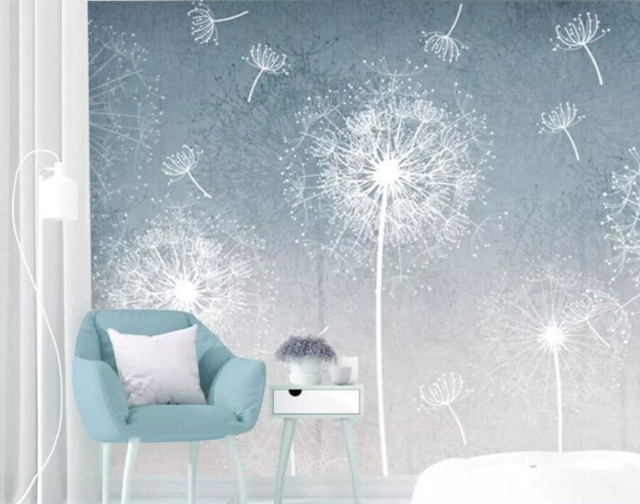Imagine walking into a room that feels like a breath of fresh air. The “White Dandelions in the Air” mural brings that dreamy vibe right into your space. Picture those delicate dandelion seeds floating gently, almost whispering sweet nothings as they dance through the air. It’s like nature decided to stop by for a friendly chat. The soft grey background gives a cozy feel, while the bright white dandelions pop, making it a perfect focal point. Whether you’re sipping tea or hosting friends, this mural sets a calming scene that might even inspire a little daydreaming. Who knows? Maybe it’ll spark a chat about childhood wishes—like the time someone blew on a dandelion and wished for pizza. Yeah, that’s a classic!