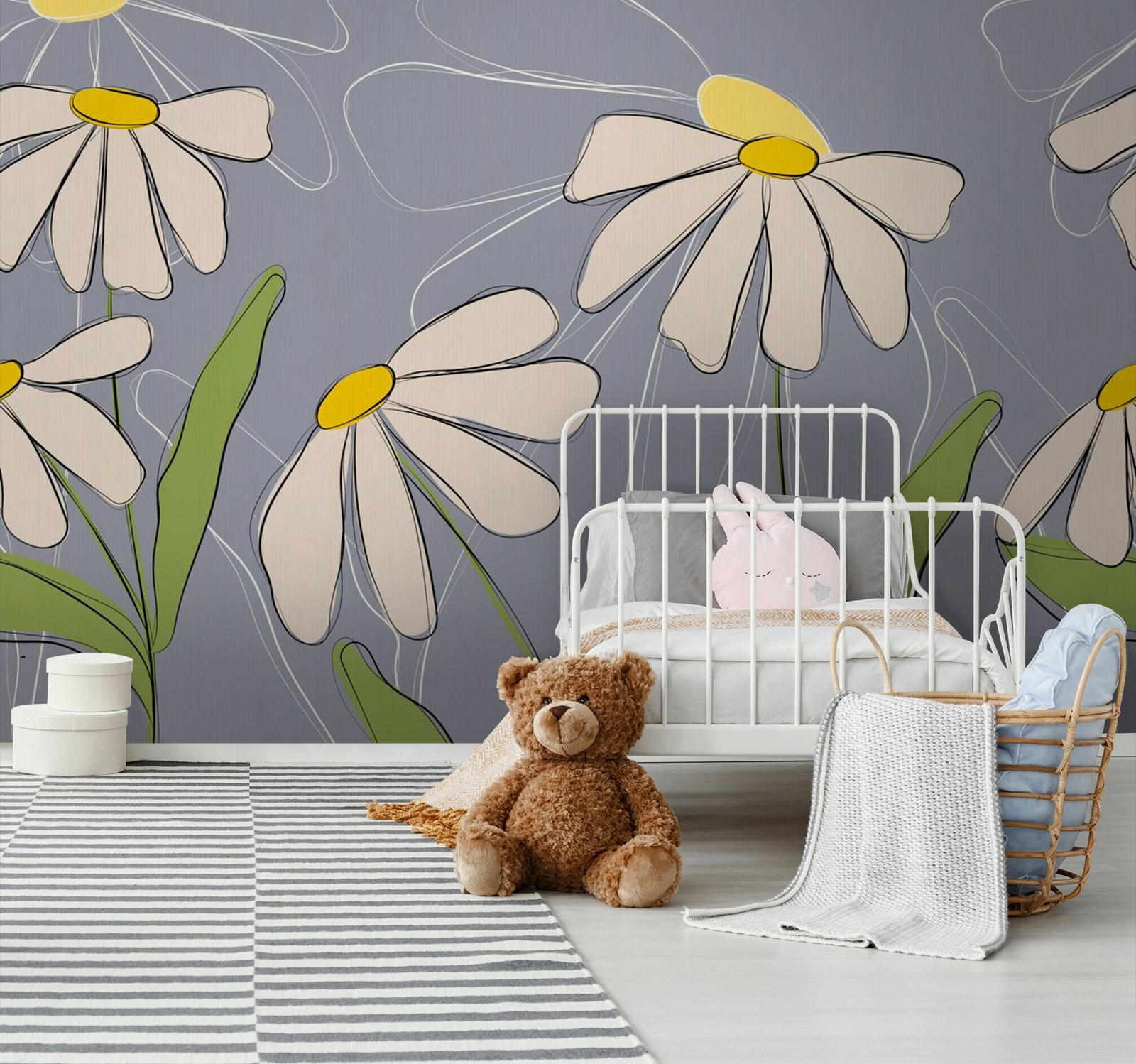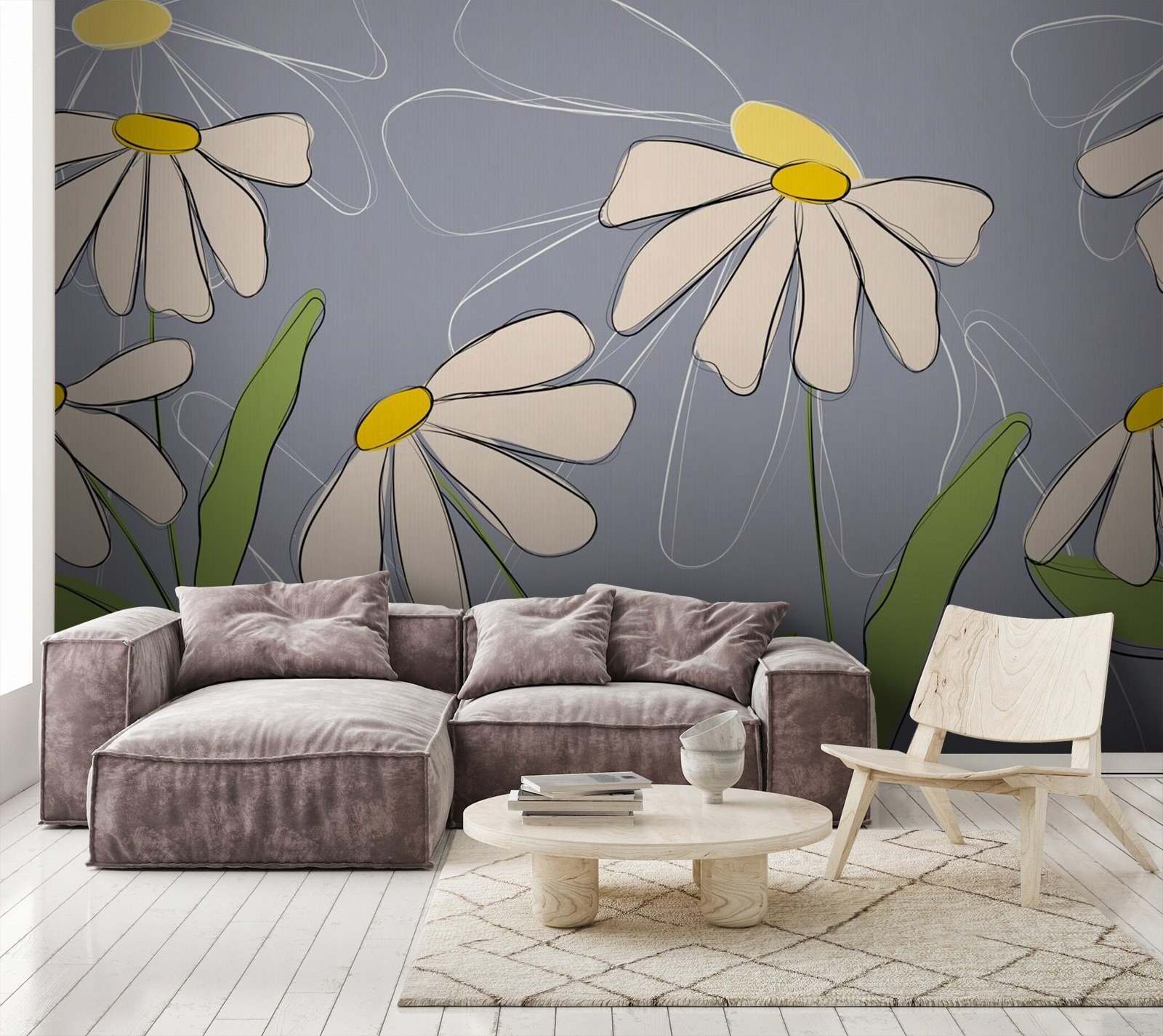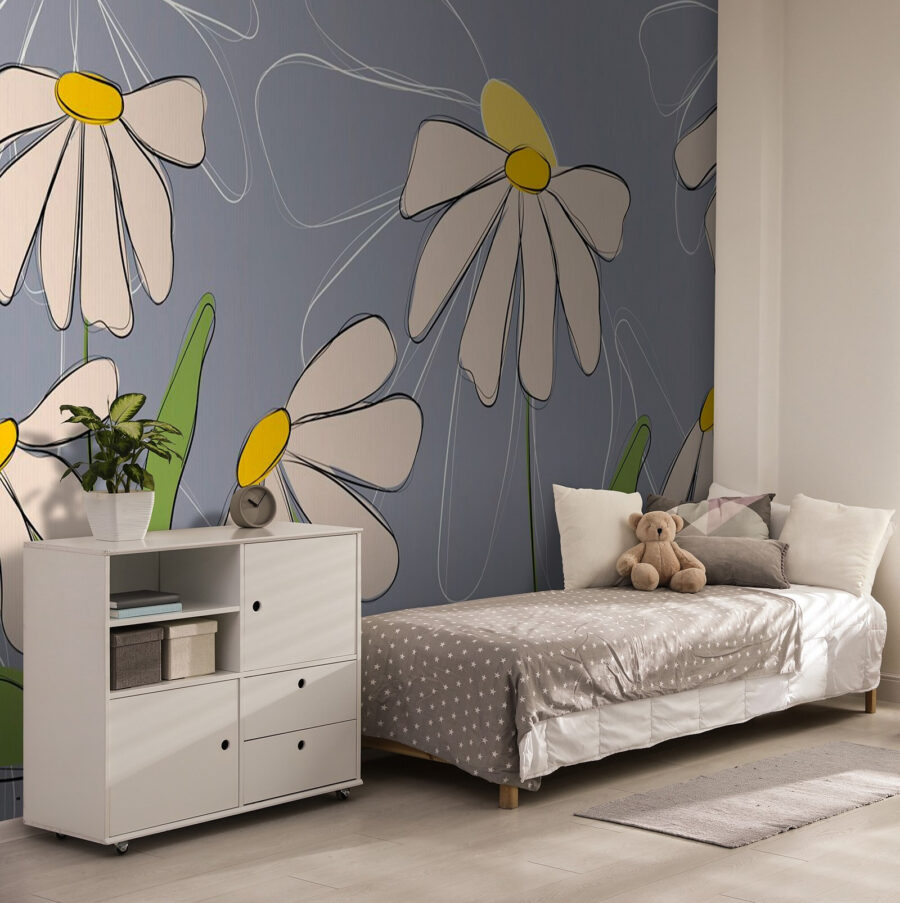 Fleur elke ruimte op met deze speelse muurschildering! Met charmante bloemen tegen een zachte grijze achtergrond brengt het een vleugje natuur naar binnen. Stel je eens voor: elke ochtend wakker worden met deze prachtige bloemen, alsof de lente besloot om je woonkamer binnen te vallen. De speelse lijnen en zachte kleuren stralen ontspanning uit, perfect om lekker met een goed boek te gaan zitten of koffie te drinken terwijl je wegdroomt. Het is alsof je een minituin hebt die nooit verwelkt – je hoeft niet eens groene vingers te hebben! Bovendien is het een leuke manier om een saaie muur op te fleuren. Kom op, laat deze madeliefjesvriendjes je dag opvrolijken!