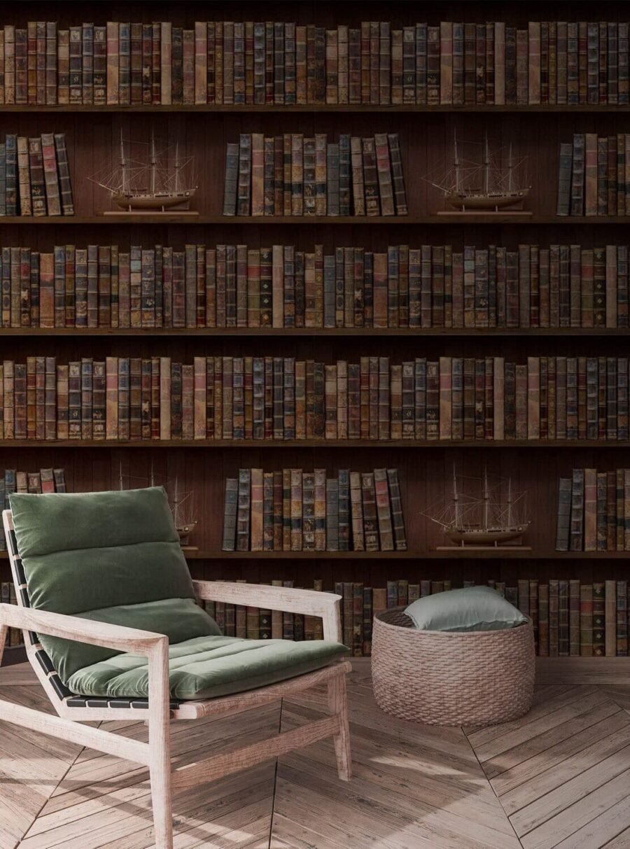 Verander uw ruimte in een gezellige bibliotheek met deze charmante muurschildering, “Wall of Books with Boats”. Stel u voor dat u een kamer binnenstapt waar de muren zijn bekleed met tijdloze boekwerken en elegante boten, waardoor u even kunt ontsnappen aan het alledaagse. Deze muurschildering is perfect voor boekenliefhebbers of iedereen die op zoek is naar een vleugje vintage charme, en brengt warmte en karakter in uw huis. Stel u voor dat u koffie drinkt bij de muur, dagdroomt over avonturen op volle zee of verdwaalt in verhalen die u meevoeren. Het is alsof u een literaire oceaan binnen handbereik heeft – wie had gedacht dat decoratie zo uitnodigend kon zijn? Of het nu gaat om een leeshoekje of een levendige woonkamer, deze muurschildering brengt leven en nieuwsgierigheid in elke hoek. Kom op, laat de boeken uw wereld binnenvaren!