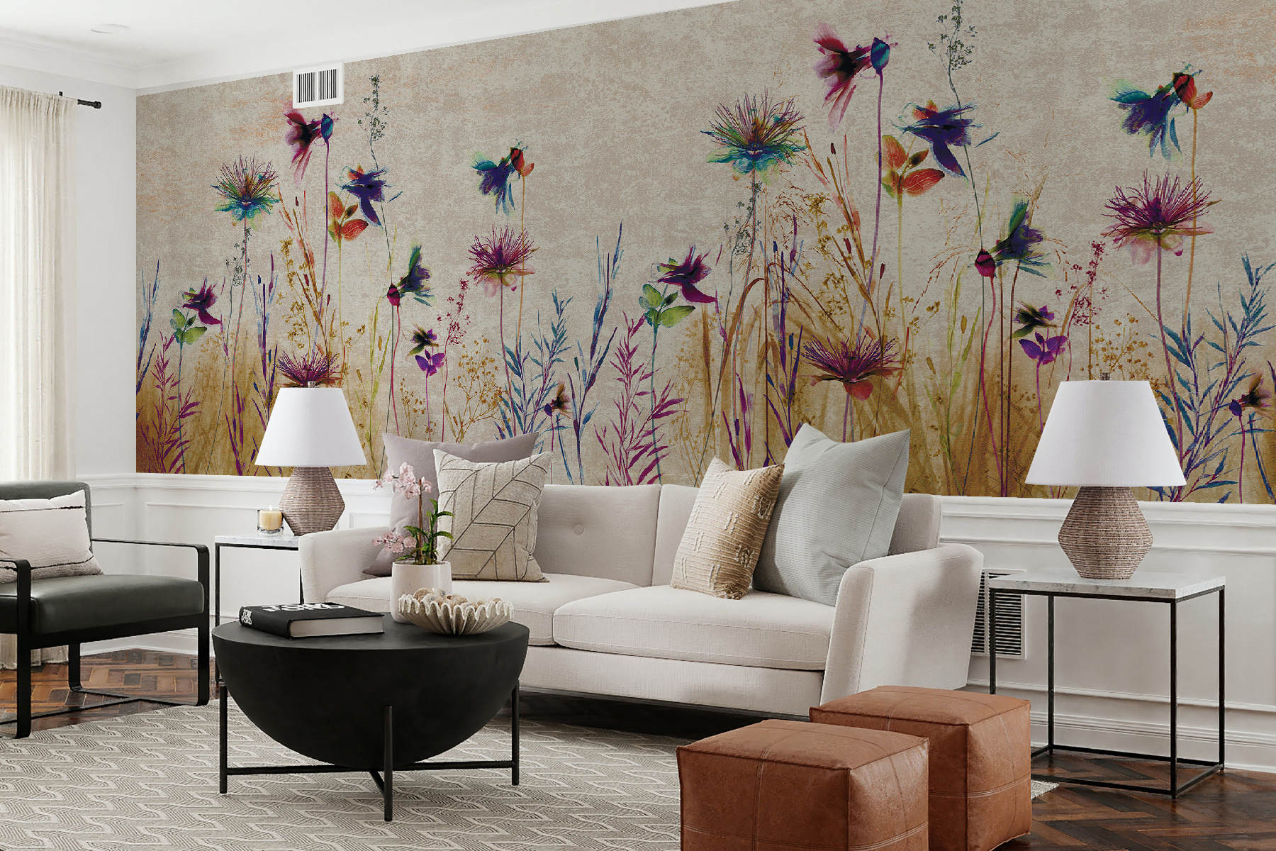 Fotobehang Delicate wilde bloemen in pasteltinten. (SKU: u93672)