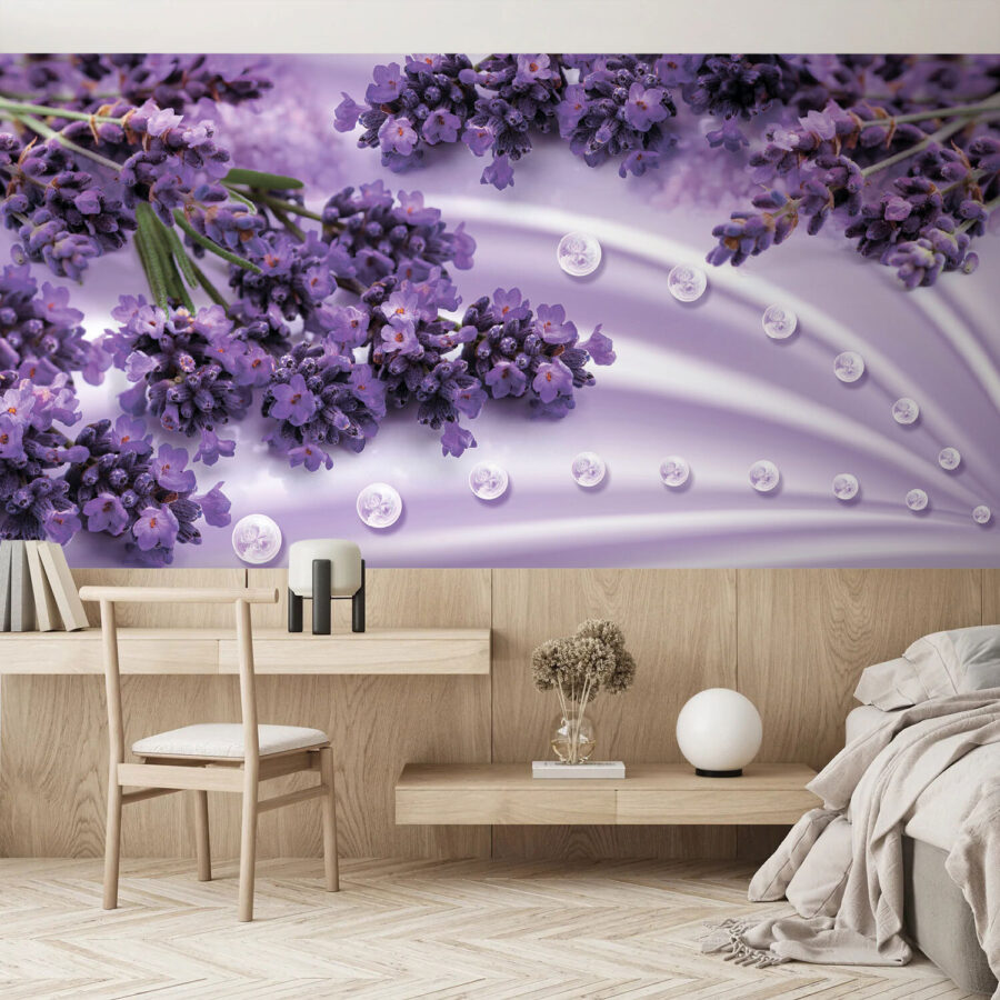 Je ruimte transformeren is nog nooit zo eenvoudig geweest met deze prachtige muurschildering met lavendelbloemen op een zachte achtergrond. Stel je voor dat je een kamer binnenstapt die aanvoelt als een winderige namiddag in een lavendelveld – sereen en opbeurend. De delicate bloemen steken af tegen de zachte kleuren en brengen een gevoel van rust dat perfect is voor momenten van ontspanning of creativiteit. Stel je voor: lekker wegkruipen met een goed boek en de bloemen om je heen als een troostende knuffel. Het is niet alleen decor, het is een kans om te ontsnappen aan de chaos van alledag en je verbeelding de vrije loop te laten. Wie zou dat niet willen?
