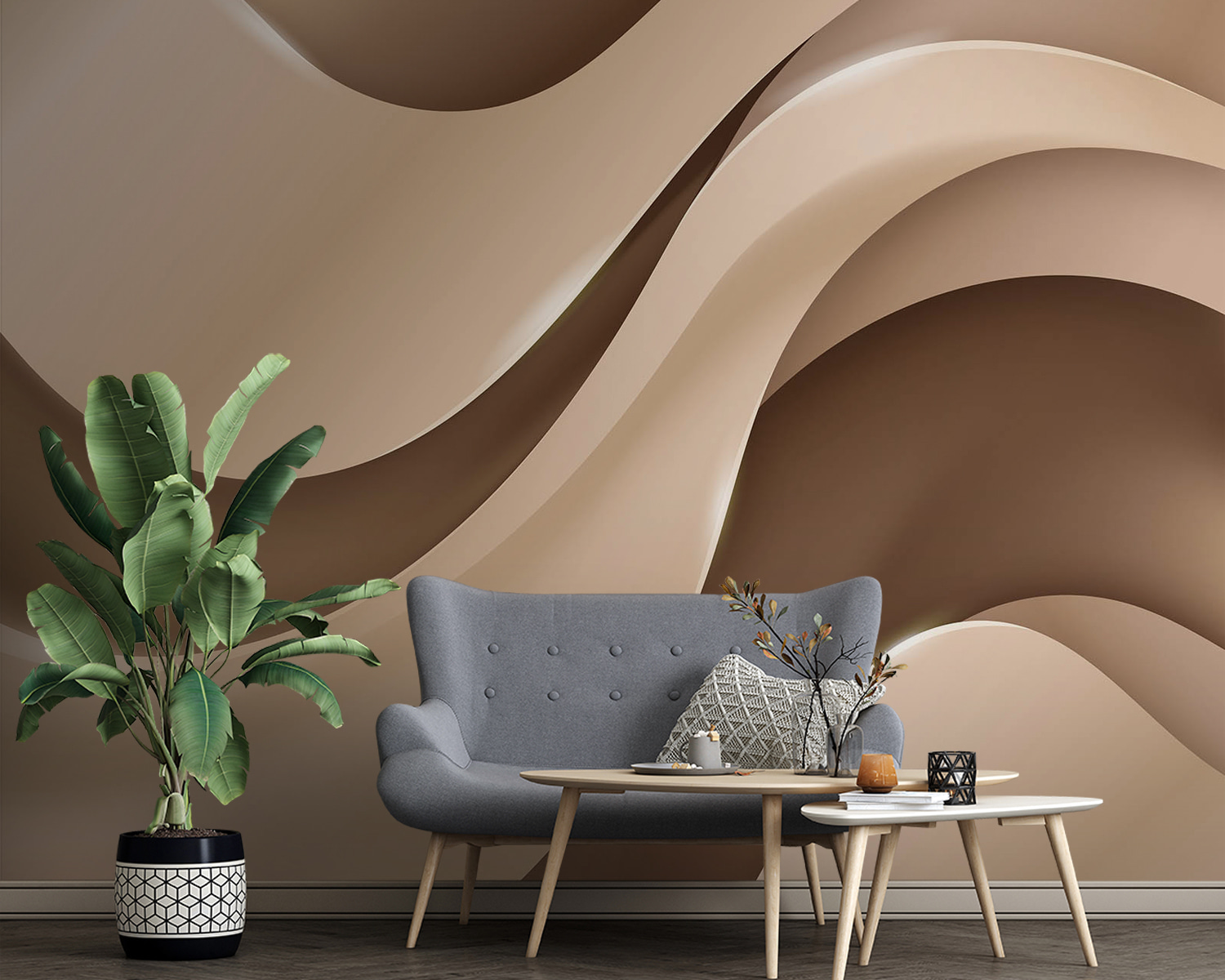 Een ruimte omtoveren tot iets speciaals is makkelijker dan je denkt. Deze muurschildering, ‘Zachte, vloeiende golven in neutrale tinten’, is als een knusse knuffel voor je muren. Stel je voor dat je een kamer binnenstapt die meteen rust uitstraalt – die zachte golven wervelen samen en creëren een serene sfeer die ontspanning fluistert. Perfect voor een woonkamer of slaapkamer, het is alsof je muren in harmonie ademen. Combineer het met wat weelderig groen of een comfortabele bank, en voilà! Je ruimte voelt compleet. Je hoeft niet naar de kust te gaan als deze muurschildering die zachte, strandachtige sfeer bij je thuis brengt. Bovendien, wie wil er nu niet dat zijn muren er zo moeiteloos stijlvol uitzien?