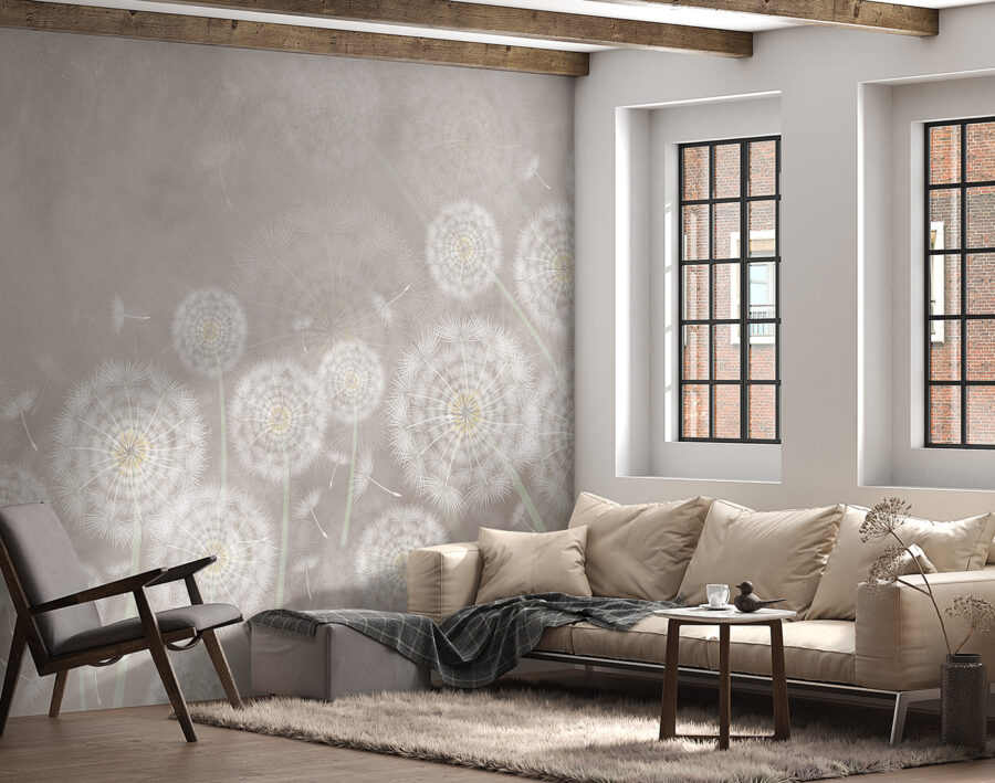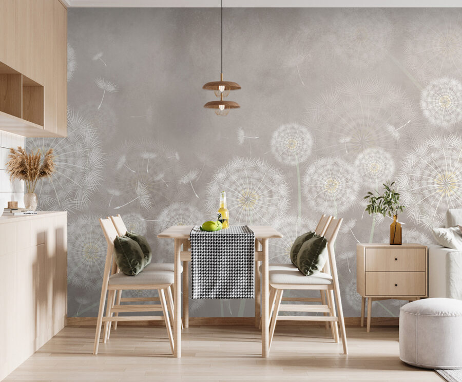 Stel je voor dat je elke ochtend wakker wordt in een kamer die aanvoelt als een zachte dagdroom, met paardenbloemzaadjes die dansen in de lucht. “Fotobehang Dandelions dancing in the breeze” is een sereen meesterwerk, dat het delicate moment vastlegt waarop een briesje opsteekt en die pluizige zaadjes meeneemt op een grillige reis. Perfect voor iedereen die houdt van een vleugje natuur in huis – het is alsof je het buitenleven naar binnen haalt zonder de rotzooi van echte pollen. Plus, elke keer als je het ziet, krijg je die zoete nostalgie van kinderzomers, het maken van wensen op paardenbloemen. Het is als een beetje frisse lucht voor je muren.